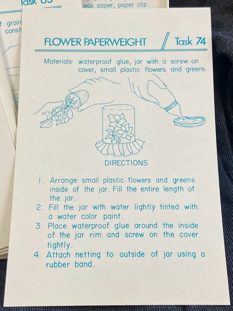 Creative Art Tasks for Children from Love Publishing Company. Boxed set of 72 cards. Each card is two-sided and features illustrations and instructions for art projects. No age indicated on the box, but I'd say for grade school children 2nd grade and up. Some require adult supervision. The cards measure 9" x 6". I noticed some minor stains/marks on a couple of the cards, but overall, they are in good shape. Box has some signs of storage wear/damage. See photos. Shipping via USPS. Non-Smoking Environment. Please email me with any questions. I do not accept returns, but if there is a problem with your purchase, please email me. I will combine multiple purchases to save on shipping and will refund the difference of the overage paid back to you.