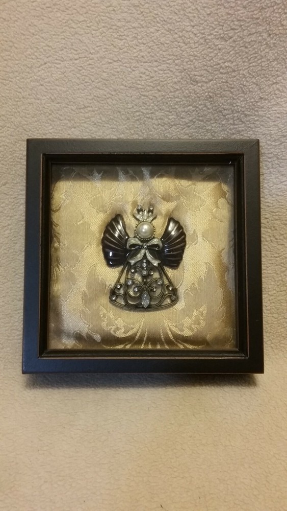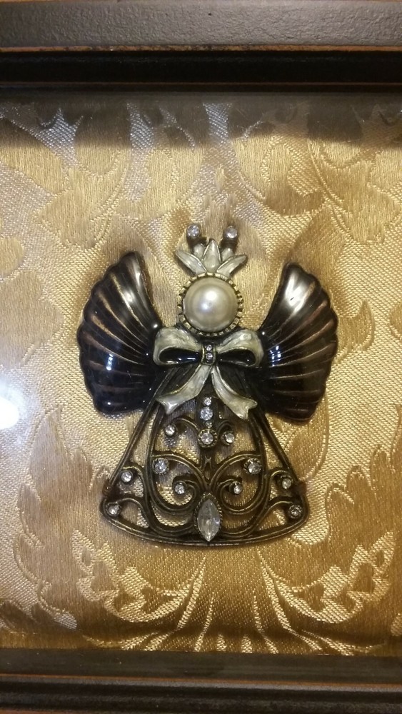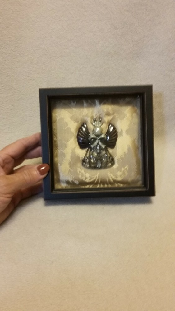 Here is an enameled and jeweled, metal angel in a wall shadow box. It has a sticker on the back- Creative CO-OP Inc. The box is 6" by 6" and 1.25" deep. It is in good condition. I will only ship withi...