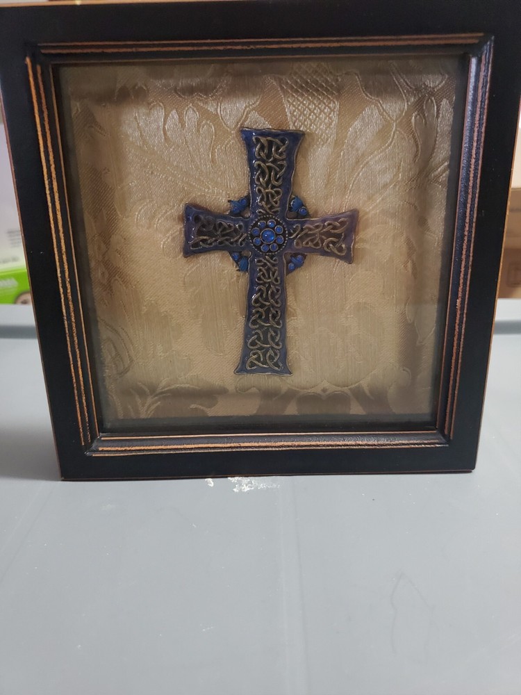 Creative CO-OP, Inc Framed Cross. This is a used item with wear on it but still looks good. Frame is 6 inch wide and 6 inch tall.