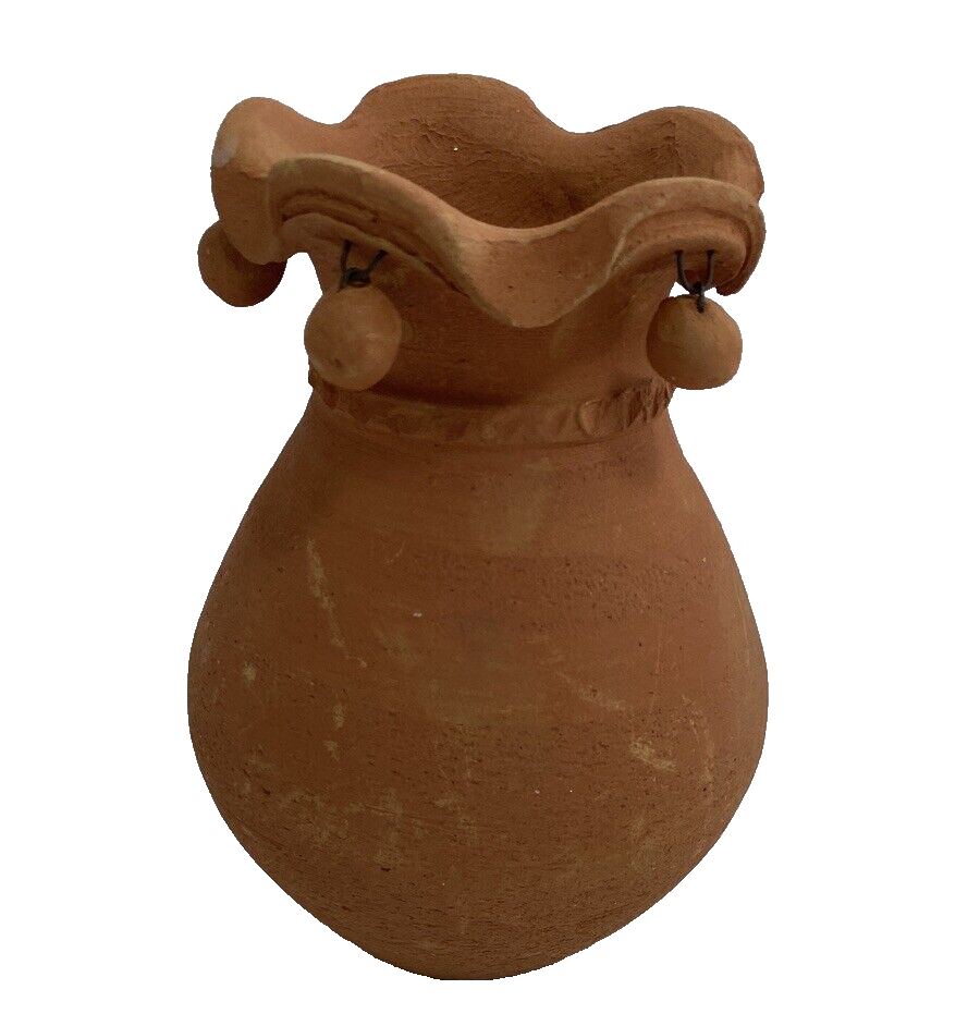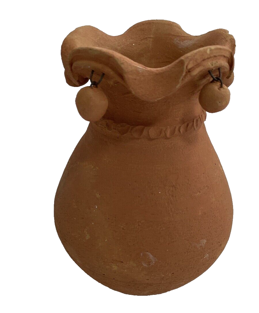 Creative CO-OP Round Clay Vase DF2514 Sienna 6 3/4" H X 4 3/4" W X 4 3/4" D ** Small Round balls hang below the rim of the clay vase. It's a perfect addition to a shelf or mantel. For extra color add dried botanicals.
