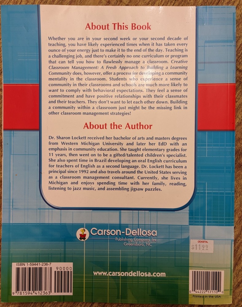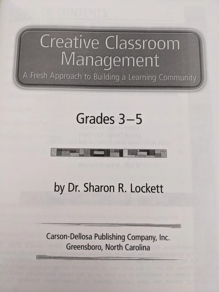 Creative Classroom Management, Grades 3-5, A Fresh Approach to Building a Learning Community. This is a great guide for first-time teachers. Includes: community-building activities, icebreakers, classroom customs, procedures management strategies, and more! The covers have no tears or wrinkles. The inside pages are clean and without tears or wrinkles.