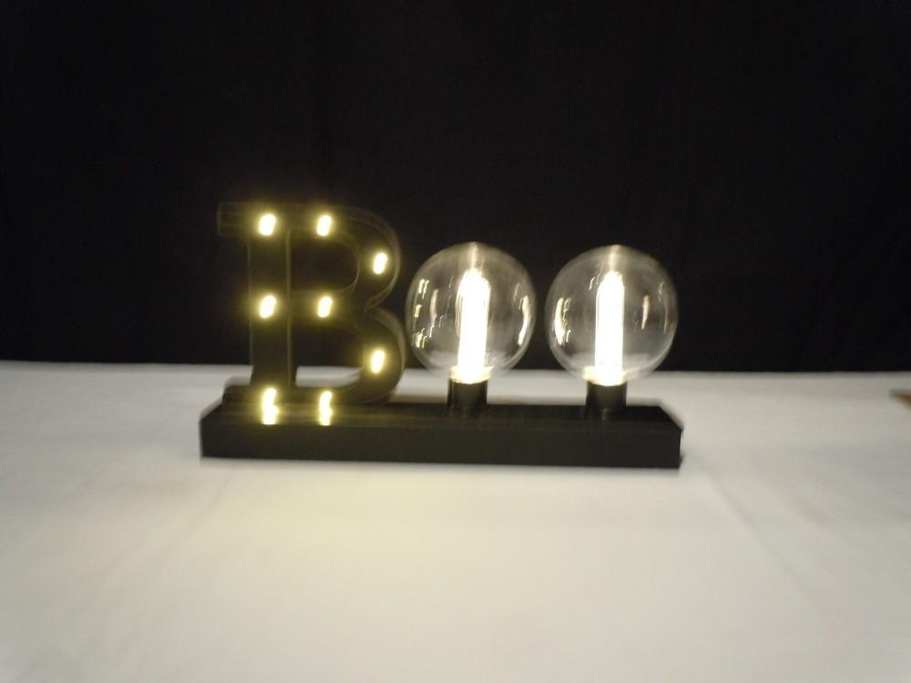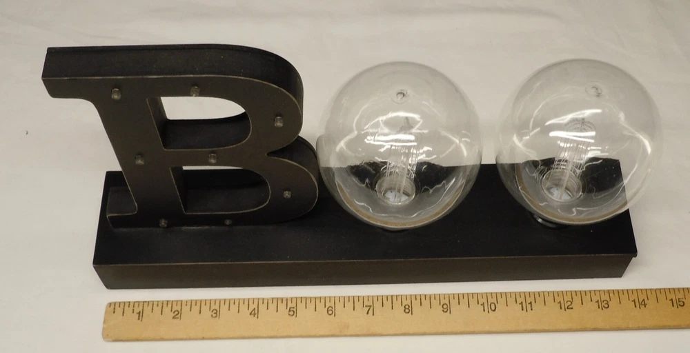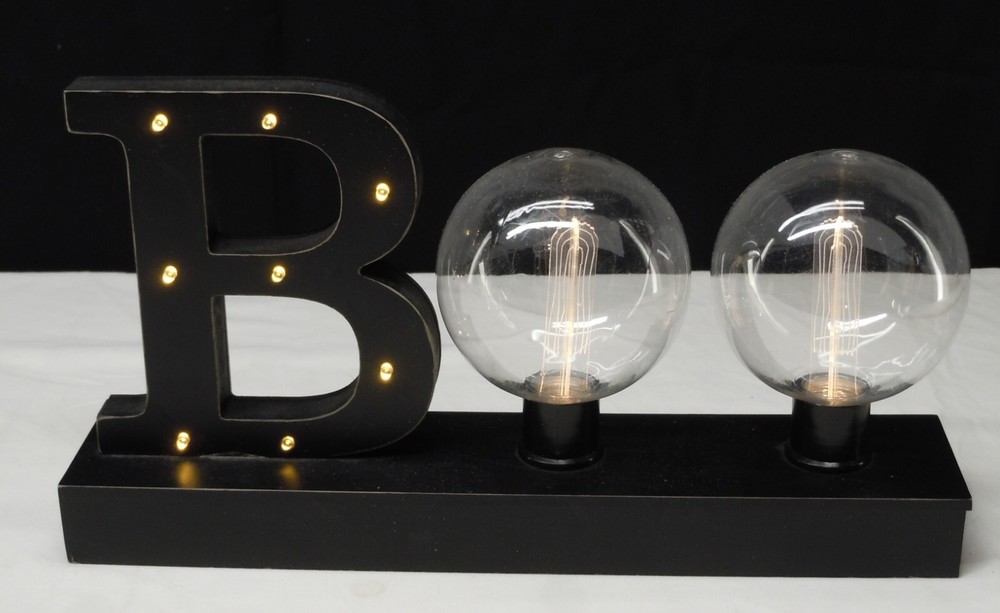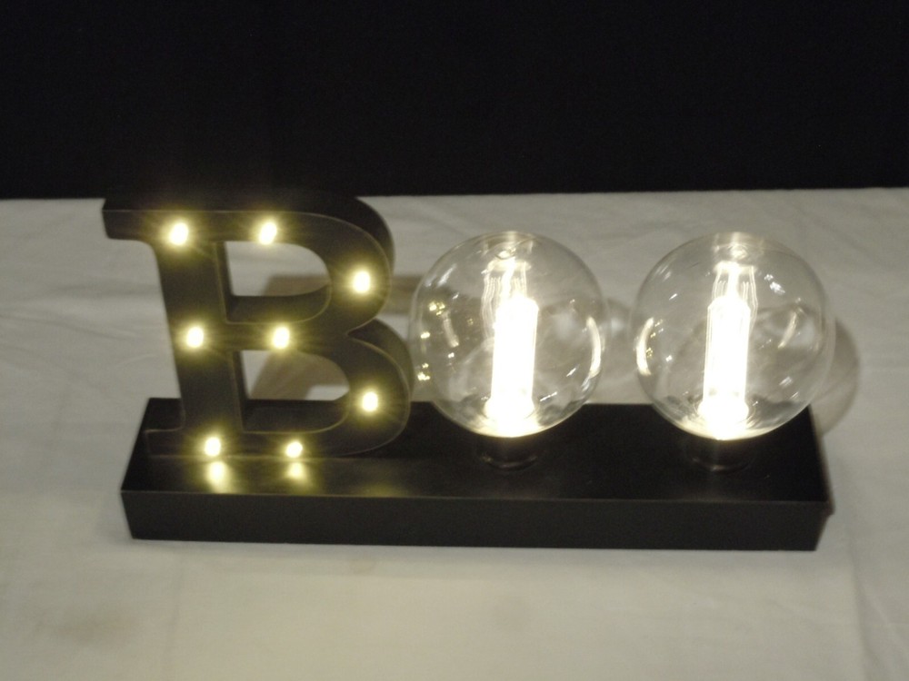 Creative Co Halloween Illuminated Lite Up Novelty BOO Light Halloween novelty "BOO" light made by Creative Co Base measures 14 inches Long x 3 inches Wide Stands 7 inches Tall at top of "B" Interesting vintage look Operates on (3) "AA" batteries (not included) MISSING battery compartment cover Damaged right side panel base - Fixable? TESTED WITH NEW BATTERIES AND WORKS CORRECTLY OFFERS ARE ALWAYS CONSIDERED ALL ITEMS WILL BE SHIPPED WITHIN 5 DAYS AFTER PAYMENT IS RECEIVED IF THERE ARE ANY PROBLEMS ISSUES OR RETURNS WITH YOUR PURCHASE; IT MUST BE PROCESSED WITHIN 30 DAYS FROM TIME OF DELIVERY *** ATTENTION INTERNATIONAL BUYERS ONLY *** ALL ITEMS WON (SINGLE OR COMBINED) MUST BE SENT INTERNATIONAL PRIORITY MAIL MY COMPANY WILL NO LONGER SHIP INTERNATIONAL FIRST CLASS MAIL I AM ALWAYS HAPPY TO COMBINE SHIPPING ON MULTIPLE ITEMS WHEN EVER POSSIBLE BASED ON WEIGHT