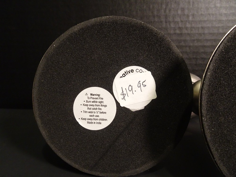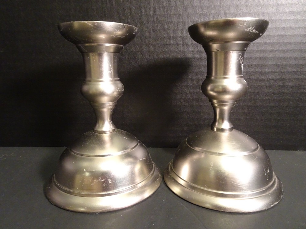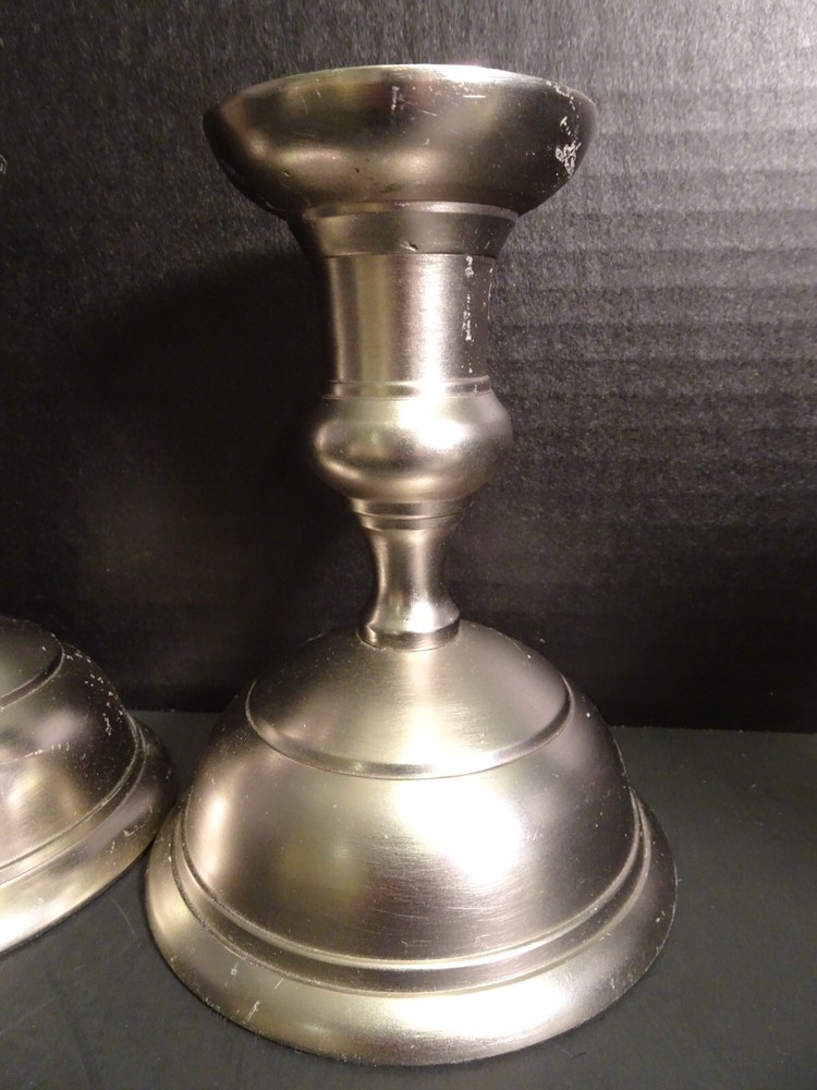 Lovely metal candlestick holders by Creative Co Op.. This listing includes a set of 2 metal candlestick holders. Original MSRP $19.95 each. Measurements - 5 1/2" tall, 4 1/4" diameter at the bottom. Each candlestick weight is about 7 ozs. Unscrews into 2 pieces for easy shipping and storage.
