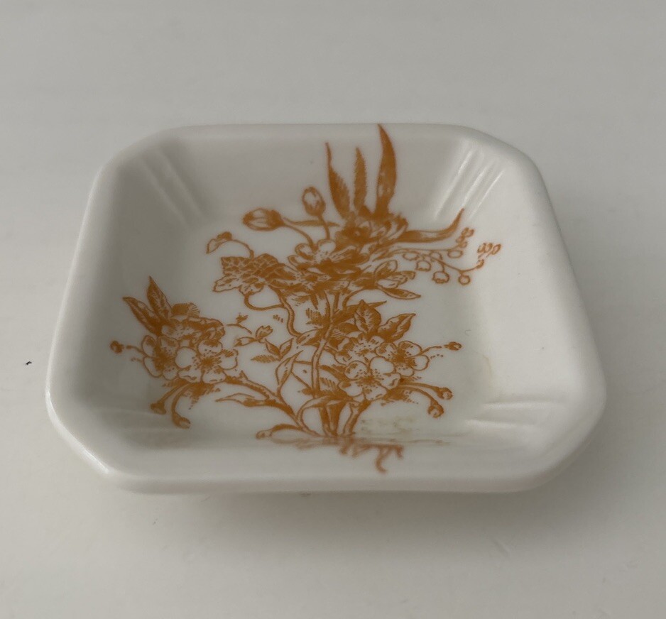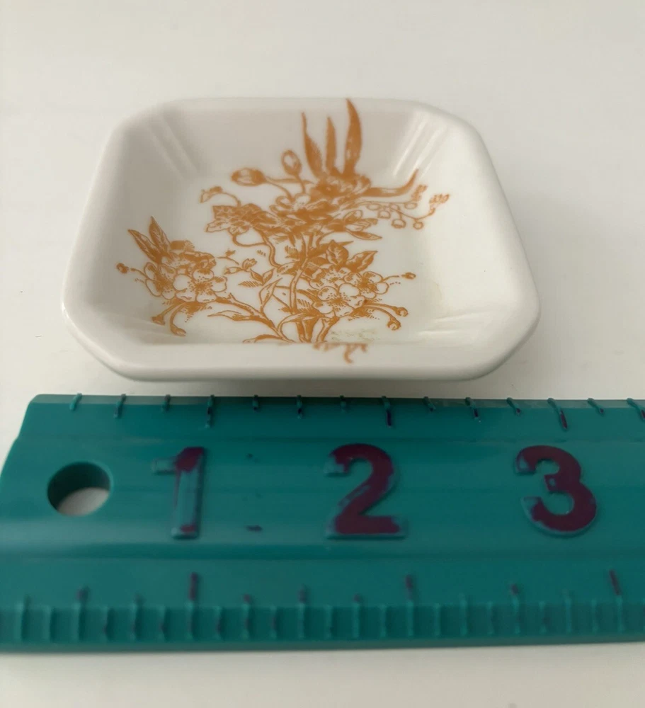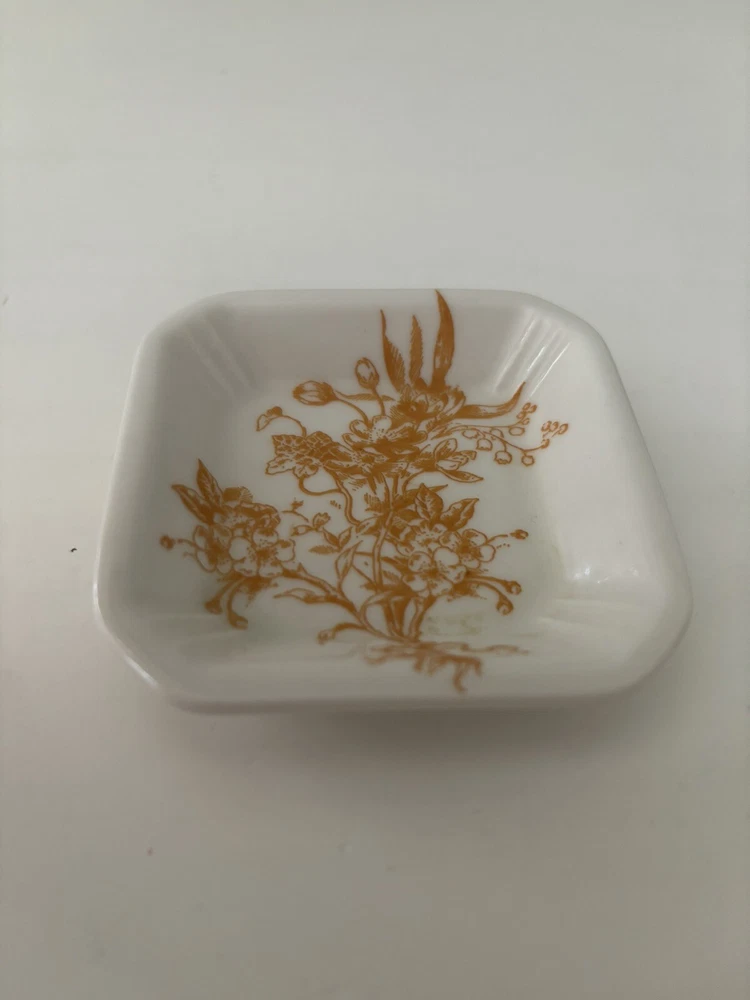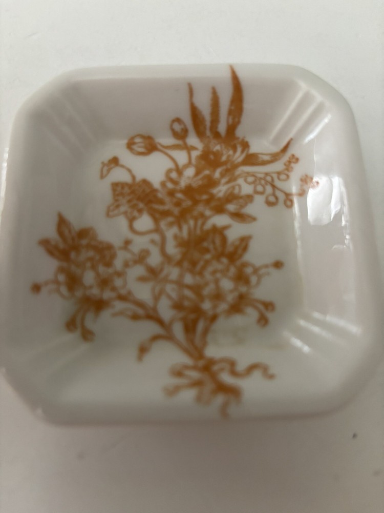 This little trinket dish is a 3”x3” square. It has a gold floral design on the inside. It is microwave and dishwasher safe. From a smoke free home. Shipped with USPS ground mail. Thanks for looking!...