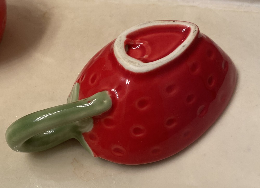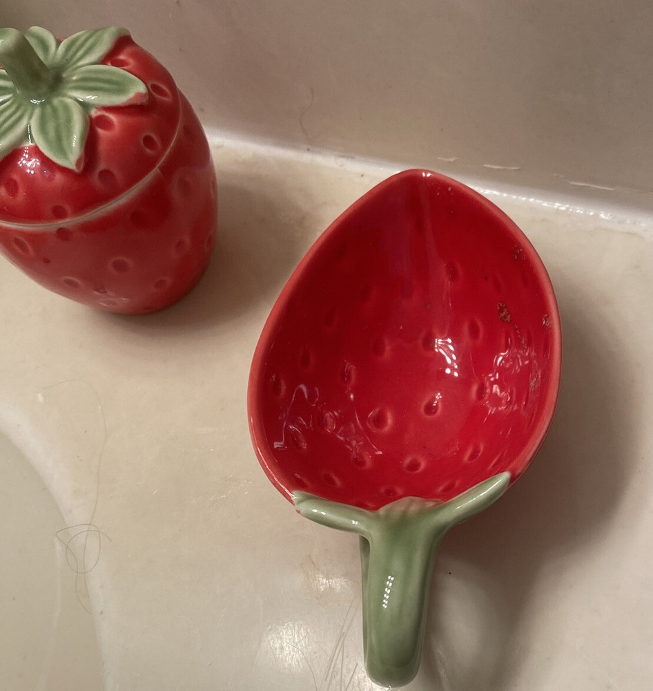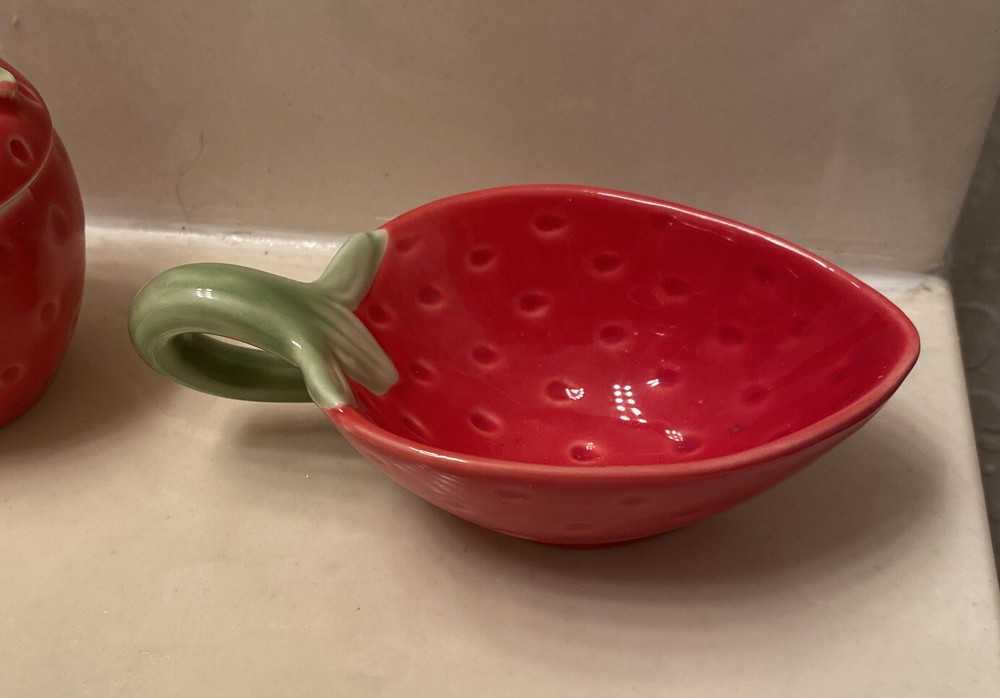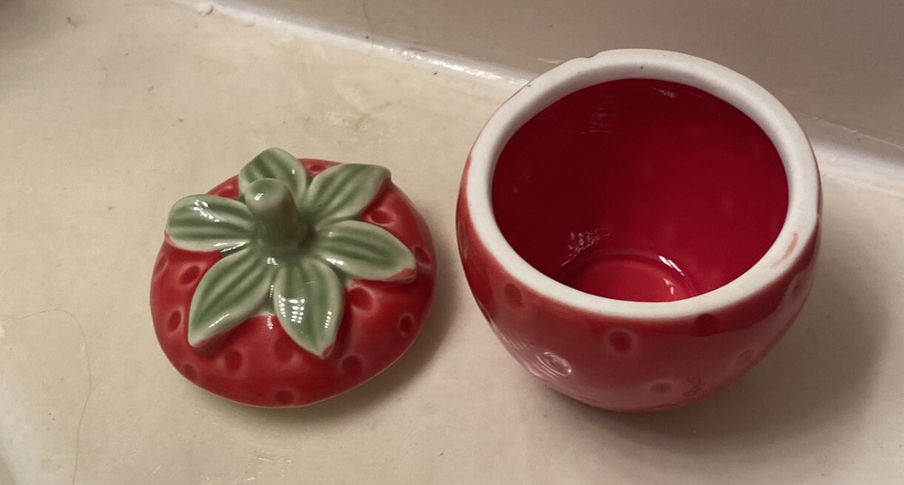 Creative Co. - Op Strawberry Stoneware Jar & Bowl. Estate sale item Bowl- 5” long x 2” H Strawberry- with lid- 3.5” H x 2.5” diameter Very good condition...