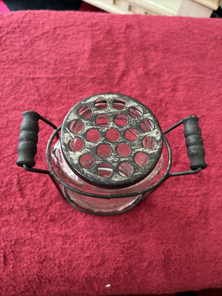 Creative Co Op Vintage Vase Frog Lid Rustic Metal Holder Farmhouse.