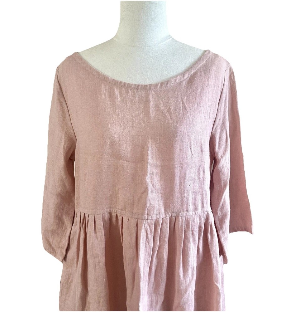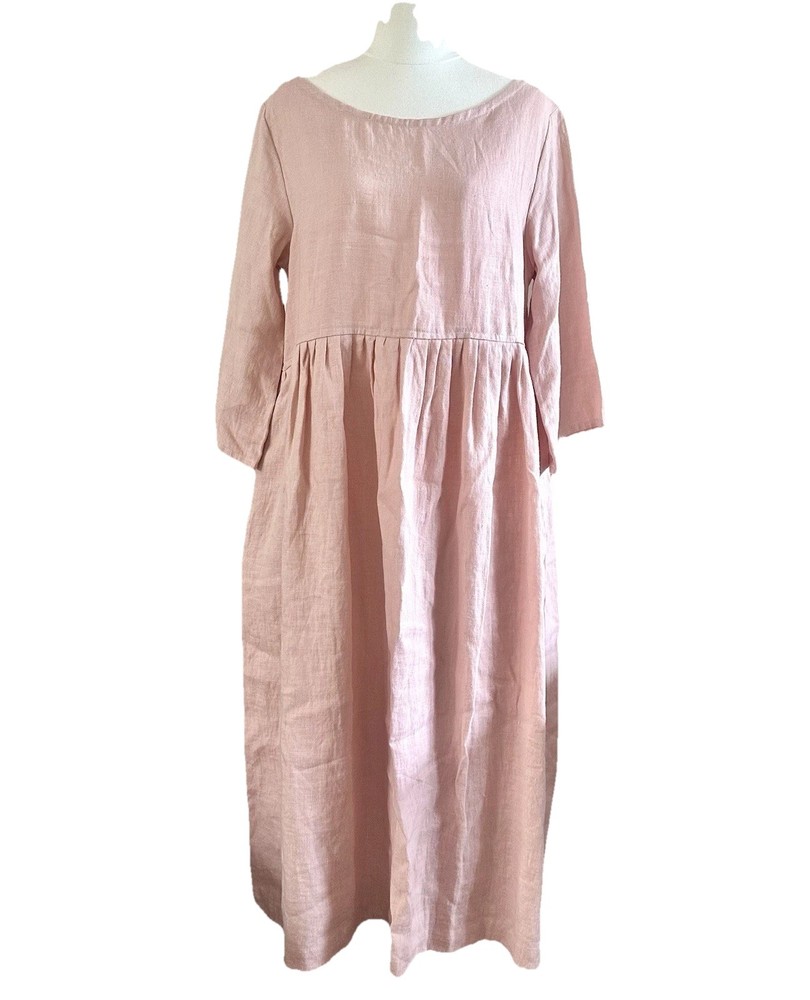 This Creative & Co Pink Linen Dress is a perfect blend of comfort and chic. Crafted from quality linen, this dress features a flattering scoop neck and wide 3/4 sleeves, embodying a relaxed, oversized silhouette that's versatile for various occasions, from casual outings to cocktail parties. The dress comes in pink,complemented by deep pockets for added functionality. Its midi length makes it a suitable choice for spring and summer wear, while machine washability ensures easy care. Whether you're travelling or enjoying everyday life, this dress promises a blend of elegance and practicality.
