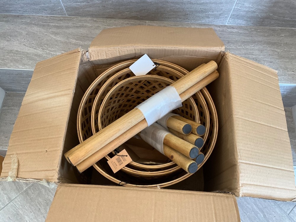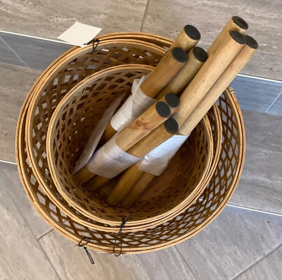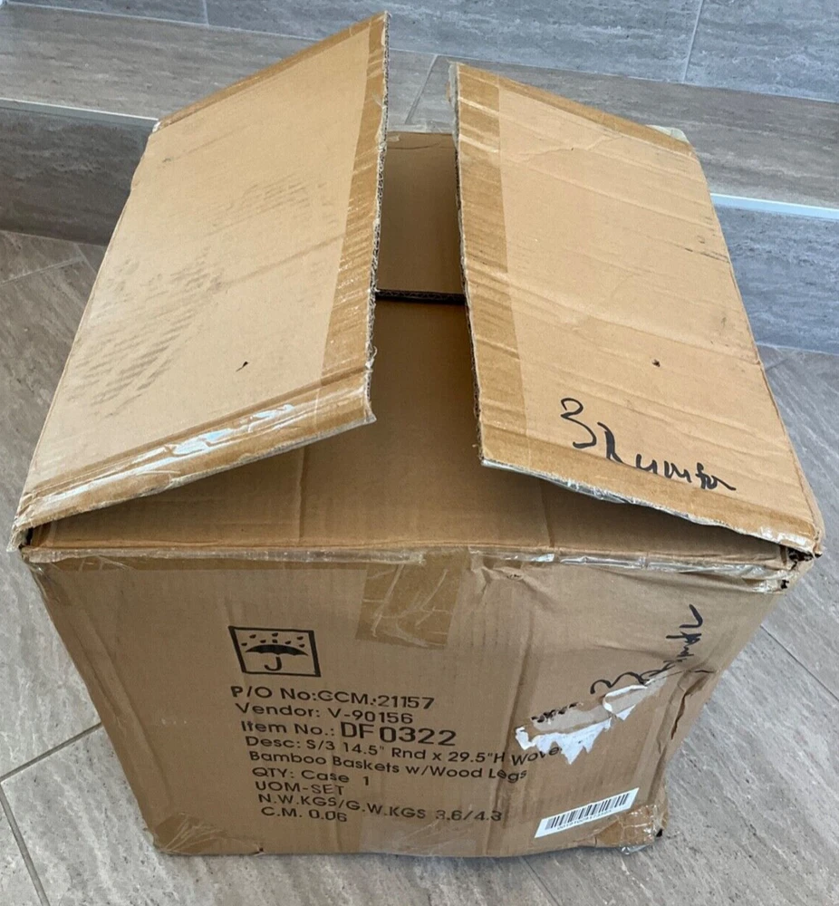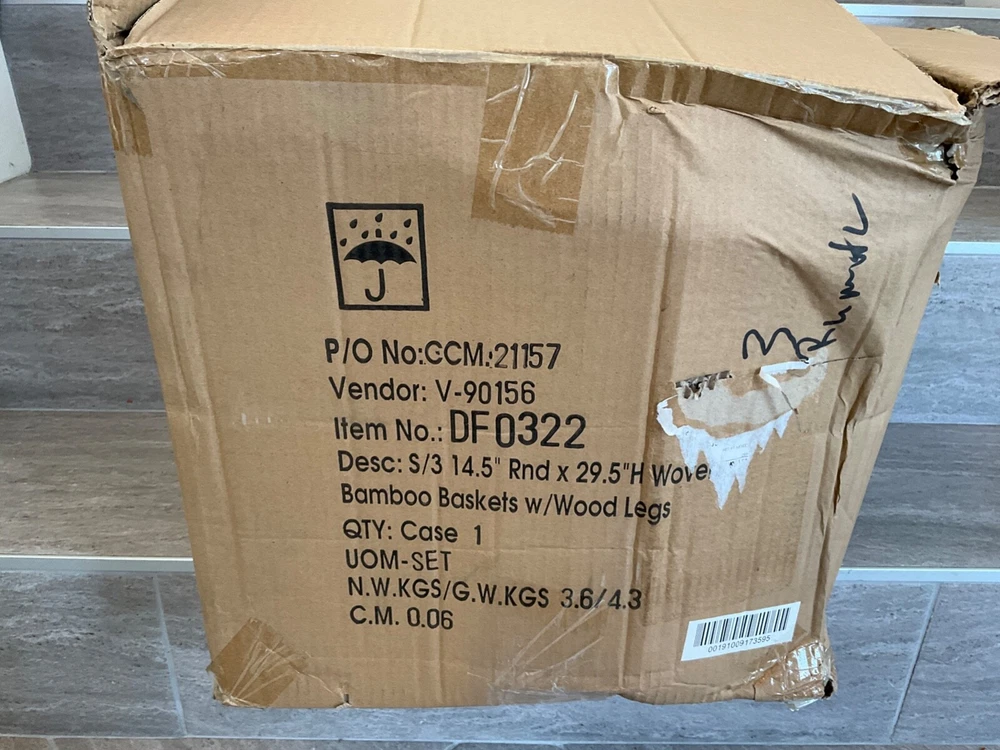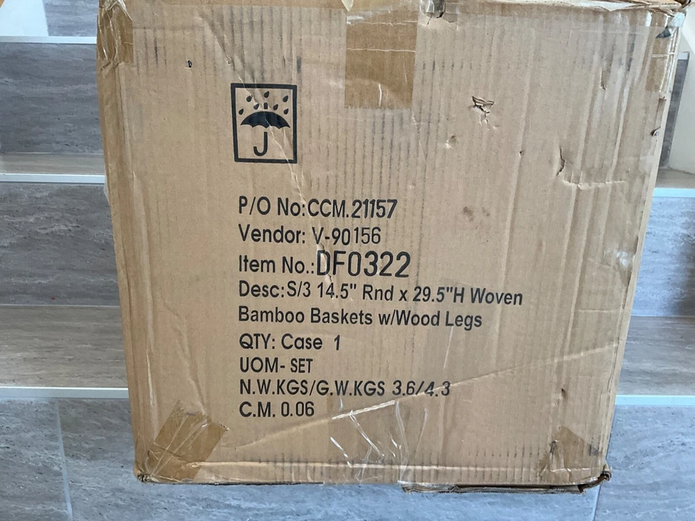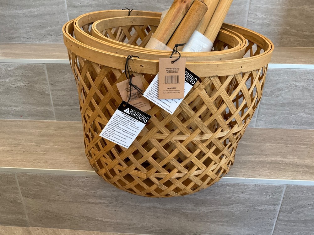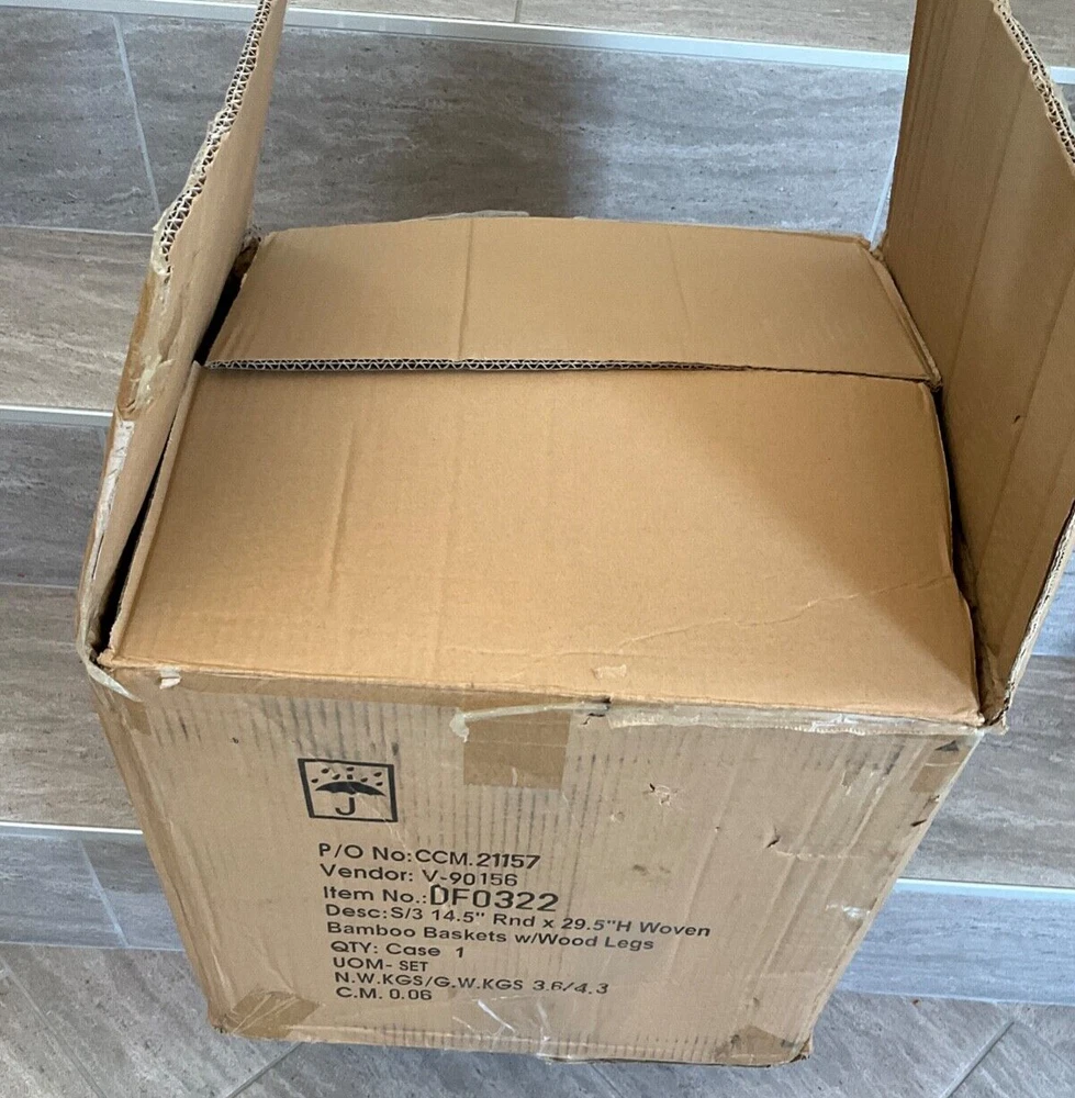 ST Creative Co-OP DF0322 Hand-Woven Round Bamboo Floor Baskets with Legs Set of 3 Each of these baskets raises your plants or other items up off the ground for better display. You can use them for plants or flowers. They can also be placed in a room for storage of clothes, toys, crafts or other items. 14-1/2" Round x 29-1/2"H, 12-1/2" Round x 25-1/2"H & 10-1/2" Round x 21-1/2"H Woven Bamboo Baskets w/ Wood Legs, Natural, Set of 3 PAYMENT We only accept PayPal . Only credit card payment through PayPal is acceptable. Providing the correct address is very important. Your purchase will be mailed out to the confirmed address that you provided to us. We will not be held responsible for any incorrect, invalid, or undeliverable address. Undeliverable package that is returned back to us for any reason (E.G. Undeliverable, Incorrect/Wrong Address, Unclaimed, etc.) And you wish it to be resend; we will need to charge you an additional shipping charge. If you cancel your order, we will refund you minus shipping fee and restocking fees. SHIPPING Most items will be shipped during the next 24 hours by USPS First Class Or Priority Mail and FEDEX with a tracking number for us buyers. Delivery normally takes between 2-5 days. Note: Transit time may vary during peak seasons and/or changing regional weather conditions. All products are 100% inspected before delivery. Additional charge for shipping to PR, HI, or AK (Please ask before buying) FEEDBACK We love to hear from you and feedback is a great way for us to improve on our service. For a reason you were dissatisfied with your purchase, please contact us directly via eBay message to resolve any problem before leaving any negative or neutral feedbacks. We want you to come out of this experience feeling 100% satisfied and happy with the purchase. We depend on your satisfaction to be successful. Therefore, your feedback is extremely important to us. If you are satisfied with the product, please leave us a POSITIVE Feedback. Your positive feedback will be much appreciated. CONTACT US If you have any questions, please contact us through “Ask seller a question” link. We will respond within 1 business day or less. Please include your eBay item number or order number in all communications; this will speed up our respond time to you. E