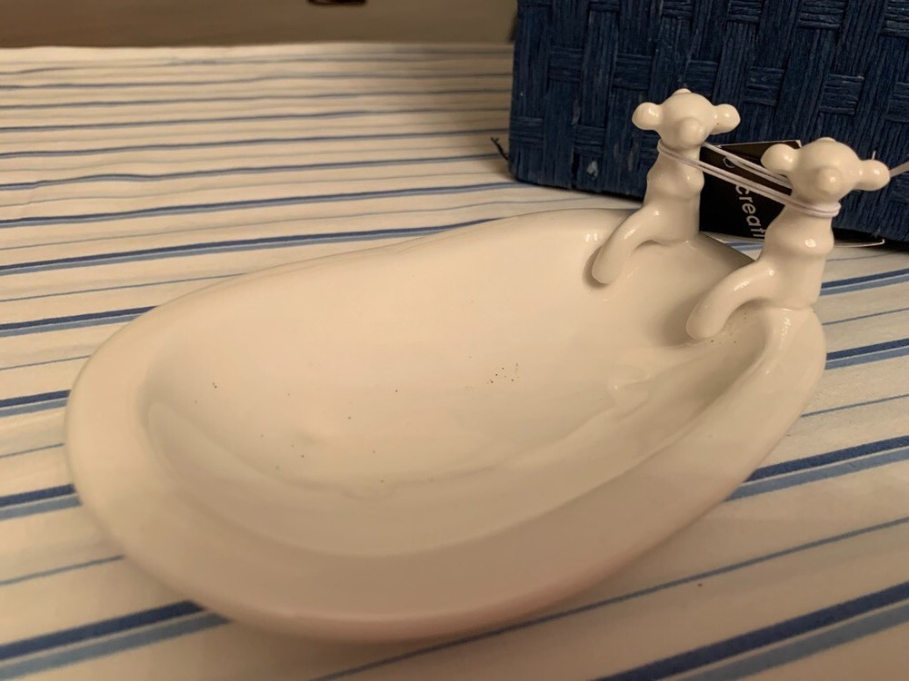 Creative Co-OP Inc. Stoneware Bath Tub Shapped Soap dish white 6 1/4" long....