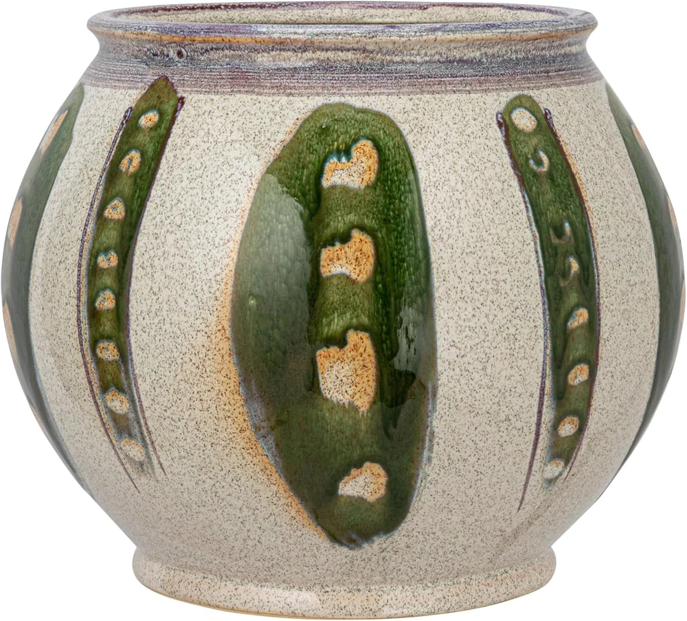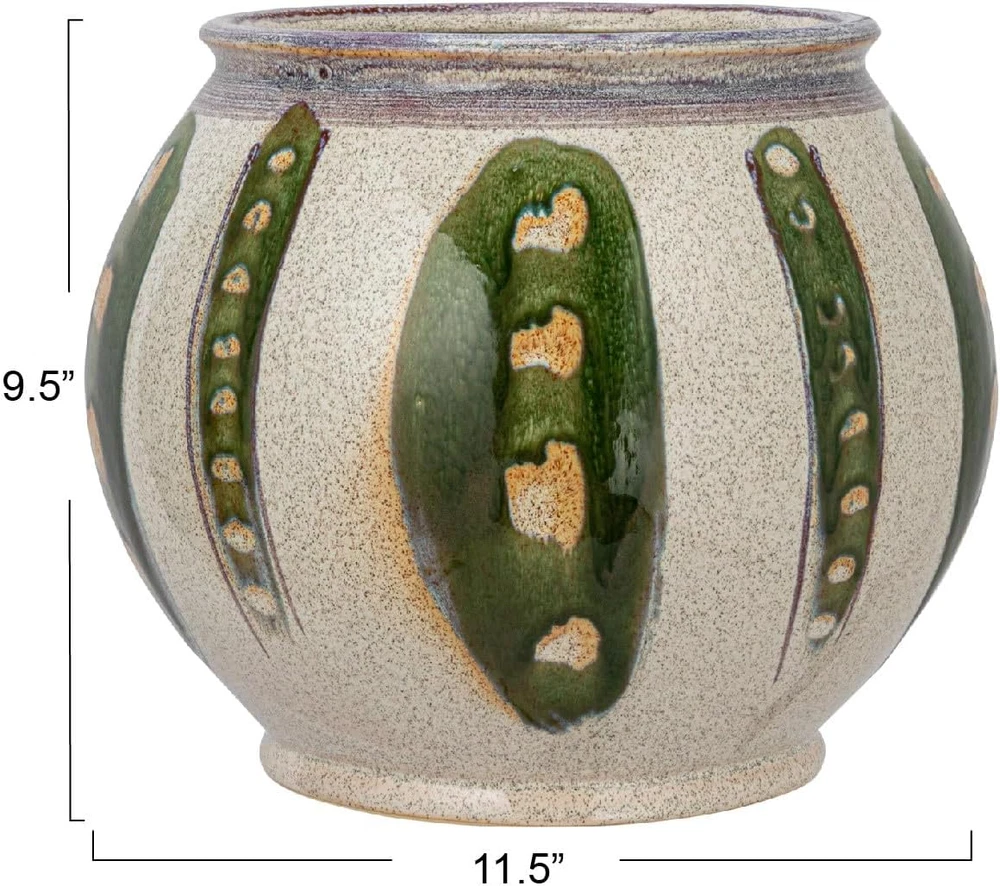 Store New Arrivals Add to Favorite View Feedback Contact Creative Co-Op 11.25 Inches round Hand-Painted Stoneware Planter with Design and Reactive Glaze, Green and Cream Vase, Multi Description Style Bohemian Brand Name Creative Co-Op Color Multicolor Pattern Solid Material Wood, Stoneware, Ceramic, Metal Material Type Wood, Stoneware, Ceramic, Metal Shape Round Theme Botanical Finish Types Painted Additional Features Wide Mouth Special Feature Wide Mouth Style Name Bohemian Number of Pieces 1 This planter has a green and cream color scheme, hand painted with intricate designs and a reactive glaze that creates a mesmerizing and unique surface perfect fit for homes with eclectic, bohemian, or artistic decor styles with its round shape, hand-painted details, and vibrant color palette that creates a striking visual impact The generous 8.25 inches round opening provides ample space to create stunning floral arrangements or showcase bold botanical displays Made of stoneware The vase measures 11.38 inches long, 11.38 inches wide, and 9.38 inches tall Add some style and personality to any home or office with these stunning vases. These vases come in various shapes, sizes, materials, and designs, offering a wide range of options to suit any preference and decor. Whether looking for a simple and elegant ceramic vase, a colorful and whimsical glass vase, a rustic and natural wood vase, or a modern and sleek metal vase, there is something for everyone in this collection. These vases are perfect for displaying flowers, plants, candles, or other decorative items, or simply as standalone accents that will enhance the beauty and charm of any space. ABOUT US We offer the best prices around on high quality products. Our E-store includes media such as books, movies, music and games while offering electronics, toys, sporting apparel, clothing, tools, general home, garden items and more. SHIPPING We are always working hard to ensure your package arrives as soon as possible. Please understand that some factors like weather, high postal traffic, and the performance of shipping companies are outside of our control. We offer free shipping to the lower 48 states and ship within 2 business days of payment, usually sooner. We do not accept P.O. Boxes. Please provide a physical address. RETURNS We offer a 30-Day Return Policy on items which you are not completely satisfied with. You have the option for a full-refund or an exchange of the item. No returns are available on items shipped outside of the USA. PAYMENT We accept PayPal. CONTACT US This page content is yet to come Please ad us to your favorite seller and visit again later Thank You CUSTOMER SATISFACTION We try our very best to make sure every customer is completely satisfied. If there's a problem, message us! We're happy to help.