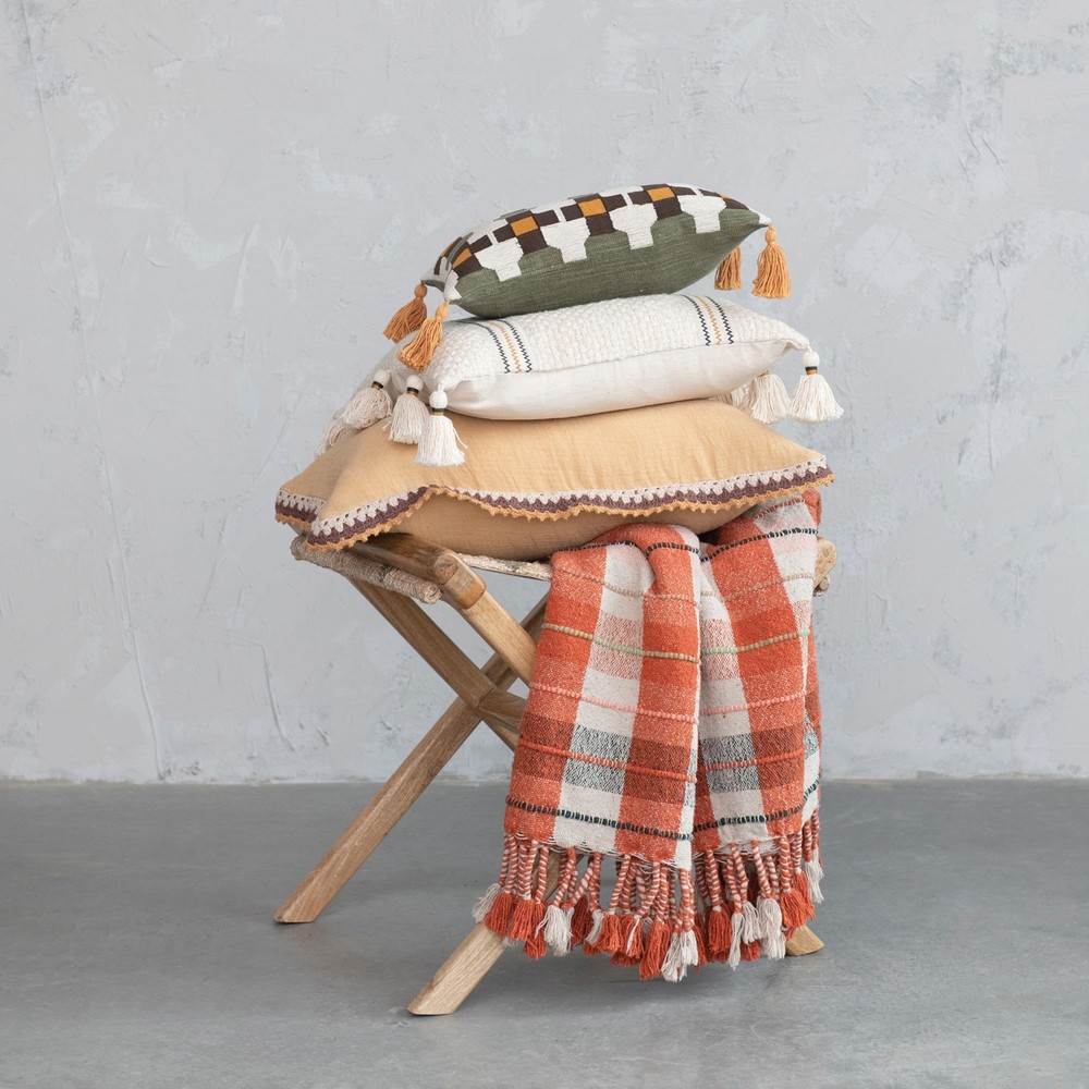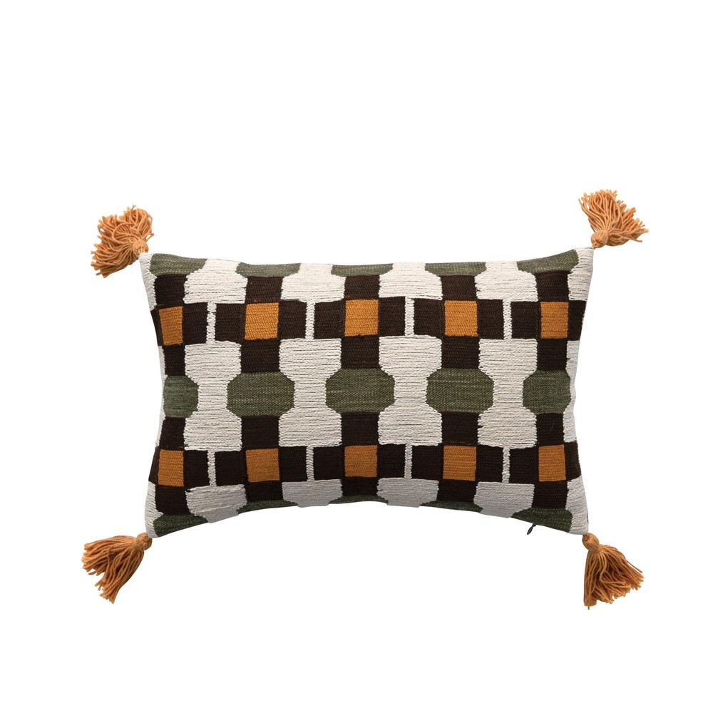 Creative Co-Op 16 Inches Cotton Embroidered Lumbar Geometric Pattern and 3 Inches Tassels, Multicolored Pillow, Multi This Cotton Embroidered Lumbar Pillow has a vibrant multicolored geometric pattern that beautifully adorns the soft cotton fabric, creating a visually appealing focal point This lumbar pillow features exquisite embroidery work that adds texture and depth to the design, with geometric patterns that are intricately stitched, showcasing the craftsmanship and artistry involved in its creation The 3-inch tassels on each corner of the pillow provide a playful and decorative touch, enhancing the sense of movement and texture of the pillow The product is made of cotton This pillow measures 16 inches in length and 10 inches in width Shipping We offer FREE shipping on all orders! We ship within Three business days of payment, usually sooner. We use a selection of shipping services such as UPS, FedEx, USPS etc. We only ship to the lower 48 states, no APO/FPO addresses or PO Boxes allowed. Local pickups and combined shipping options are not provided at this time. Return You can return a product for up to 30 days from the date you purchased it. Any product you return must be in the same condition you received it and in the original packaging. Please keep the receipt. Payment We accept payment by any of the following methods: PayPal Please pay as soon as possible after winning an auction, as that will allow us to post your item to you sooner! Feedback Customer satisfaction is very important to us. If you have any problem with your order, please contact us and we will do our best to make you satisfied. Contact Us If you have any queries, please contact us via ebay. We usually respond within 24 hours on weekdays. Please visit our eBay store to check out other items for sale! Thank you for shopping at our store.