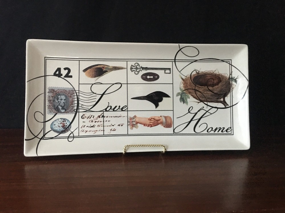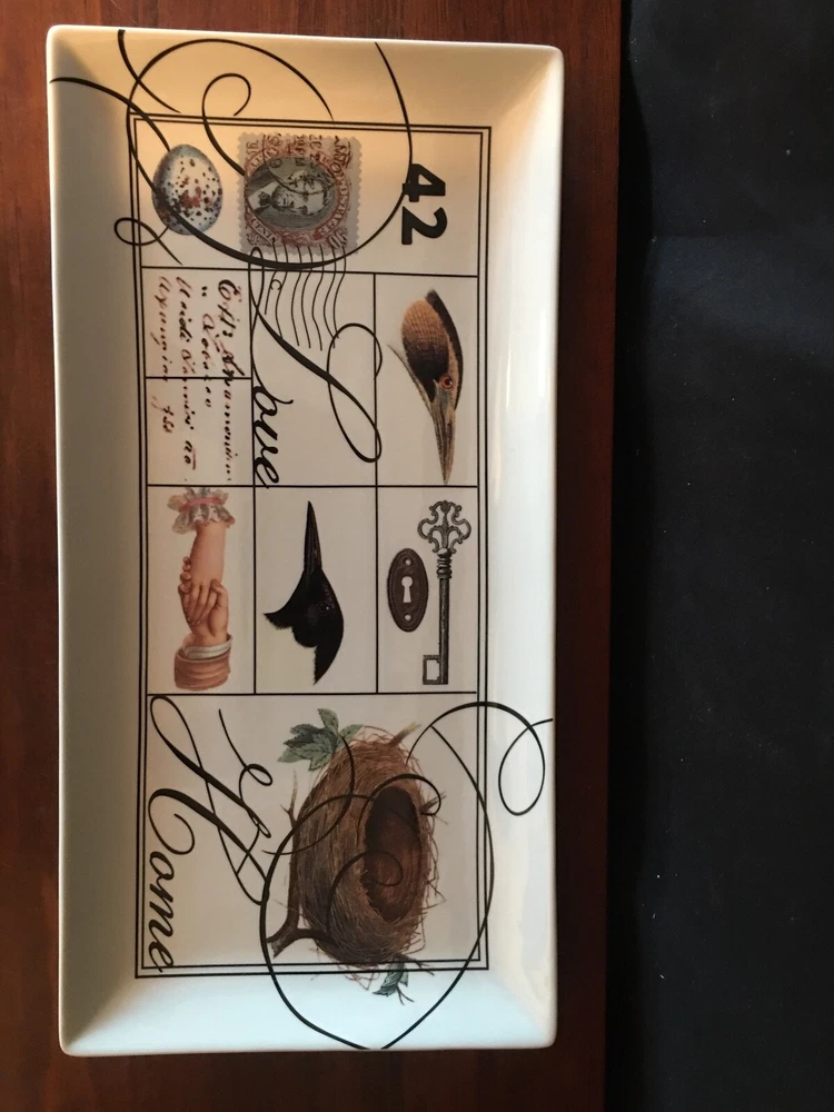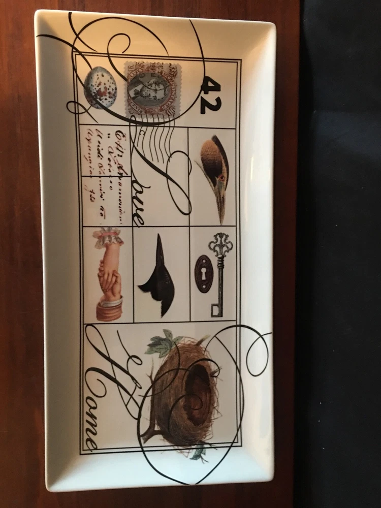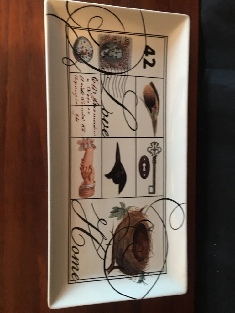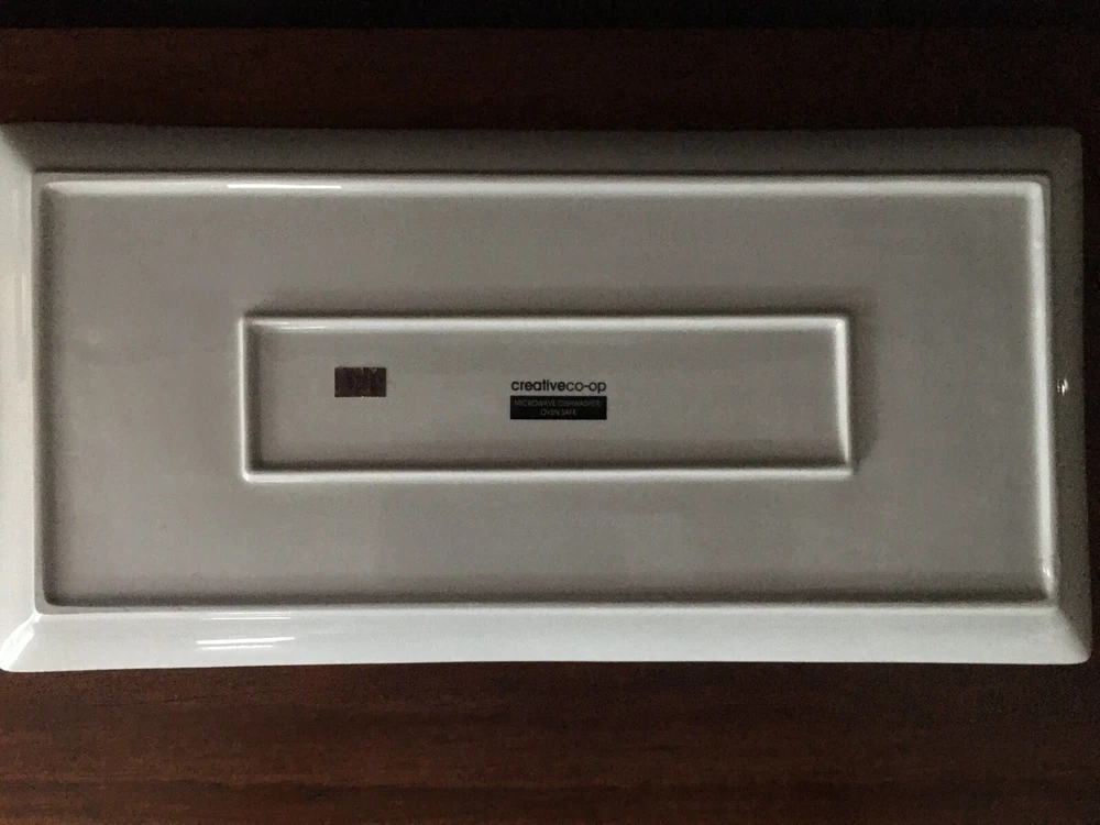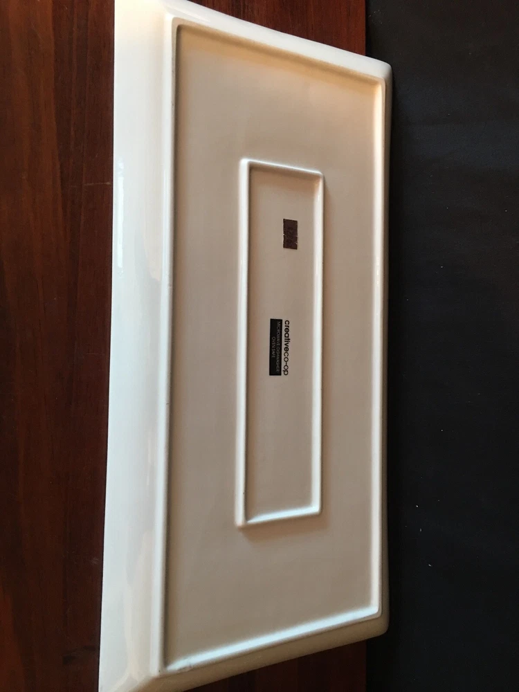 Creative Co-op 16" long 8" wide serving tray in mint condition without any chips, cracks, utensil wear or crazing. Microwave safe...