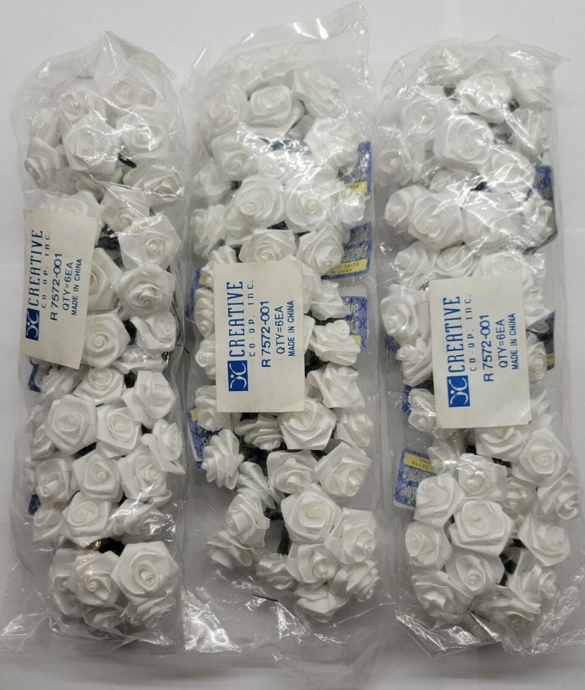 Creative Co-Op 18 Bunches 25 mm White Ribbon Roses (8 Roses Per Bundle)....