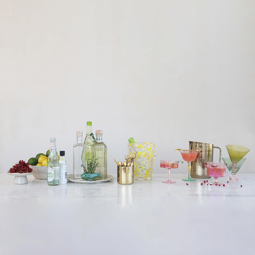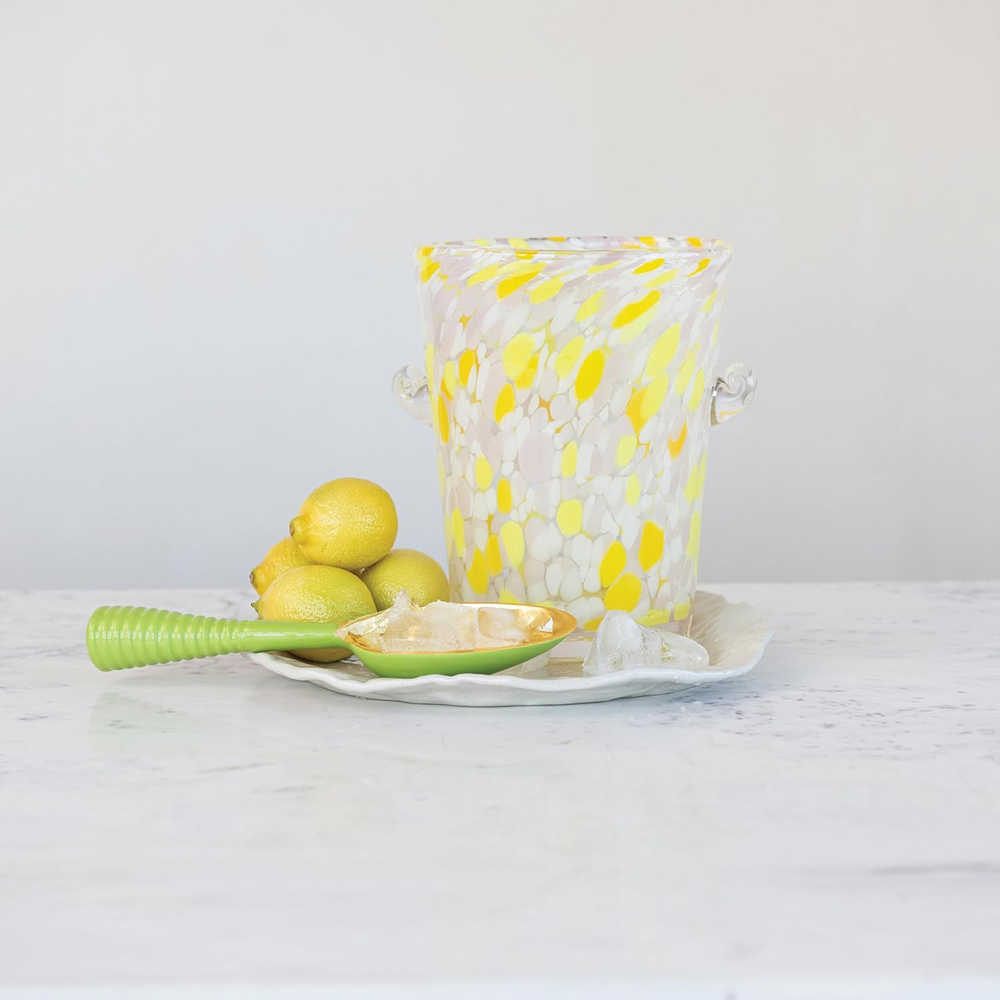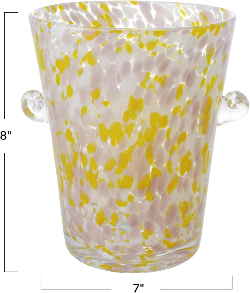 This ice bucket is a total showstopper! The hand-blown glass has such a fun, confetti-like design that instantly brightens up any table. It’s the perfect size for chilling drinks, and the sturdy handles make it easy to carry. The mix of yellow, pink, and white adds a cheerful pop of color—great for parties or just adding a playful touch to your kitchen. Love how unique and well-made it is!