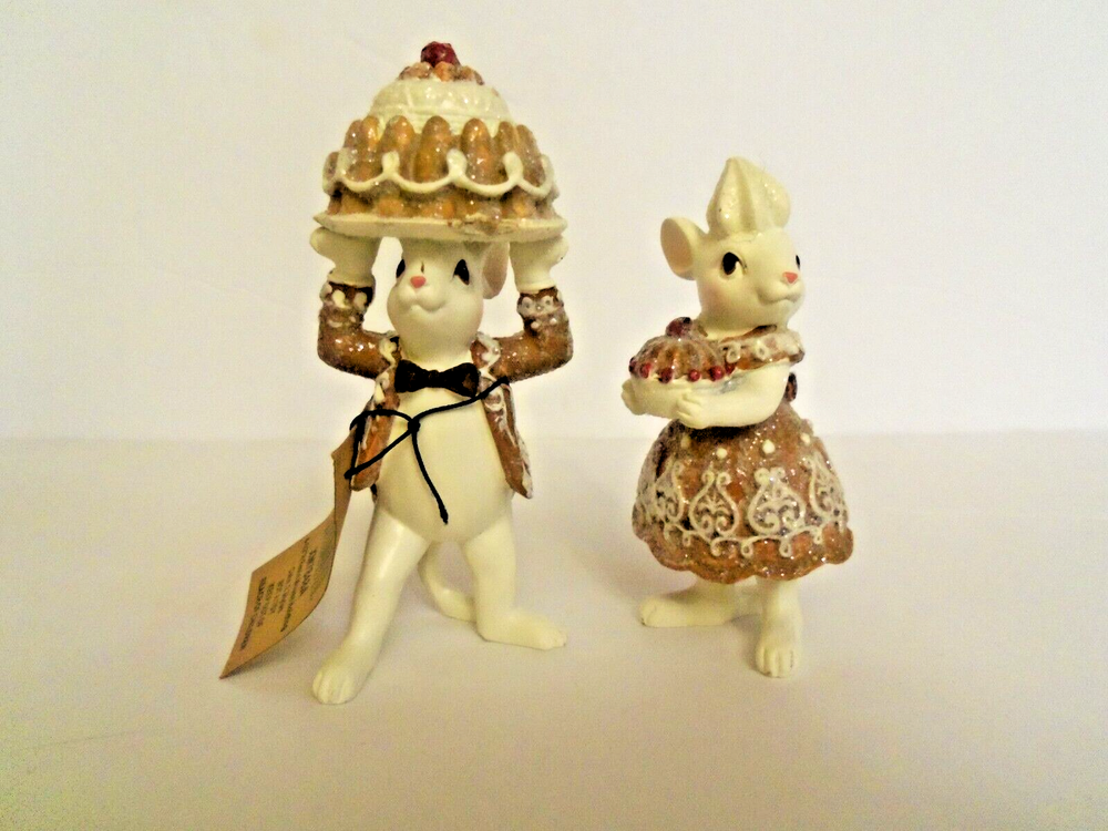 This adorable figurine features two resin mice holding a delicious gingerbread cake. Crafted by Creative Co-Op with attention to detail, this collectible is perfect for any fan of cute and festive decor. Made from high-quality resin, these little mice are sure to bring a smile to anyone's face. Whether you're an avid collector or simply looking for a charming addition to your home decor, this figurine is a must-have. Take home these lovable mice today and add a touch of whimsy to your space. **Tag Missing from one figurine, item new **