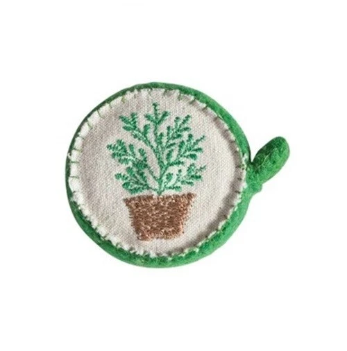 Creative Co-Op 2"D Wool Felt Covered Tape Measure Green w/Embroidered Plant 5'L
