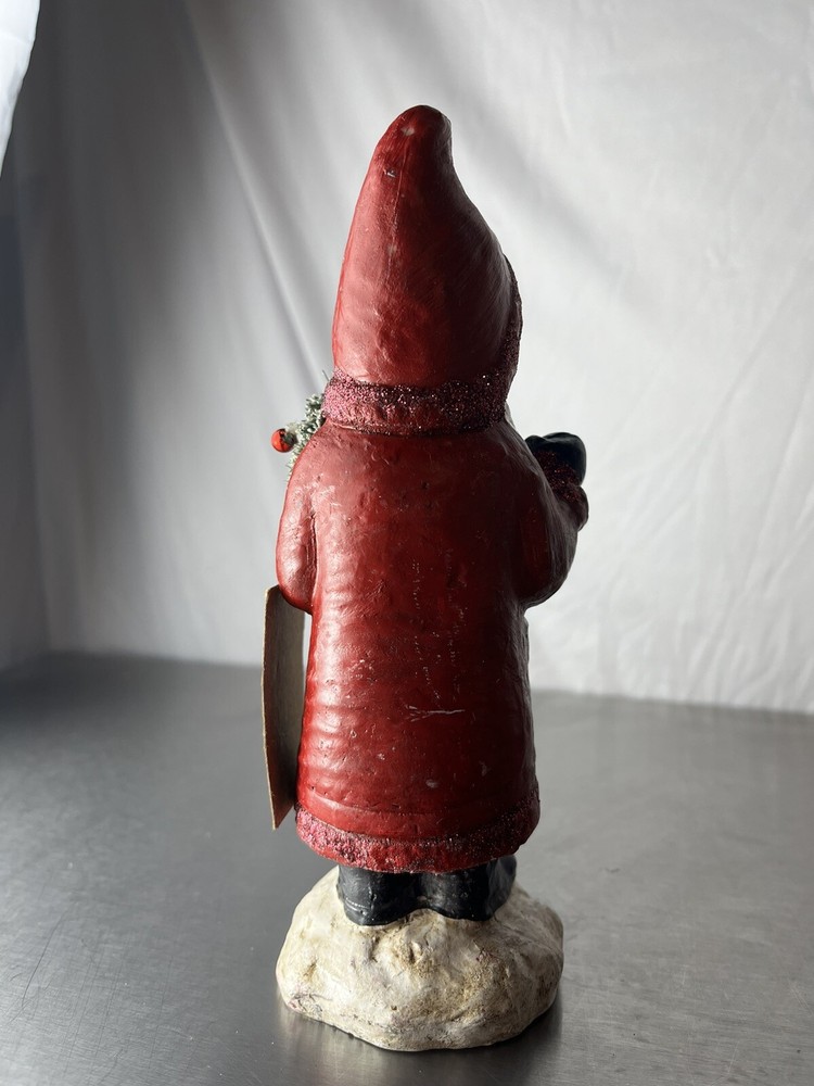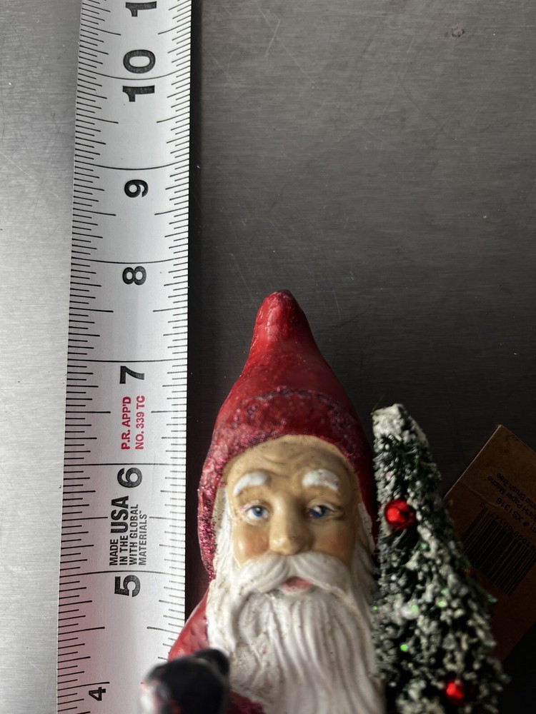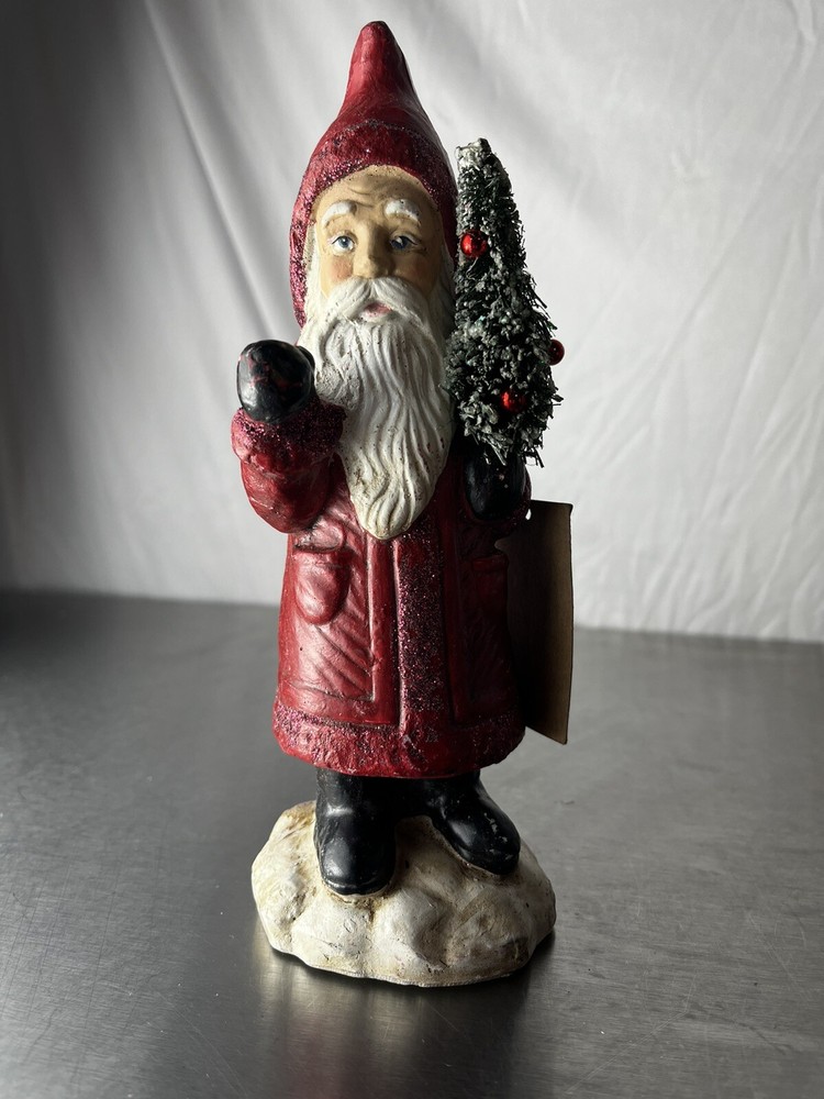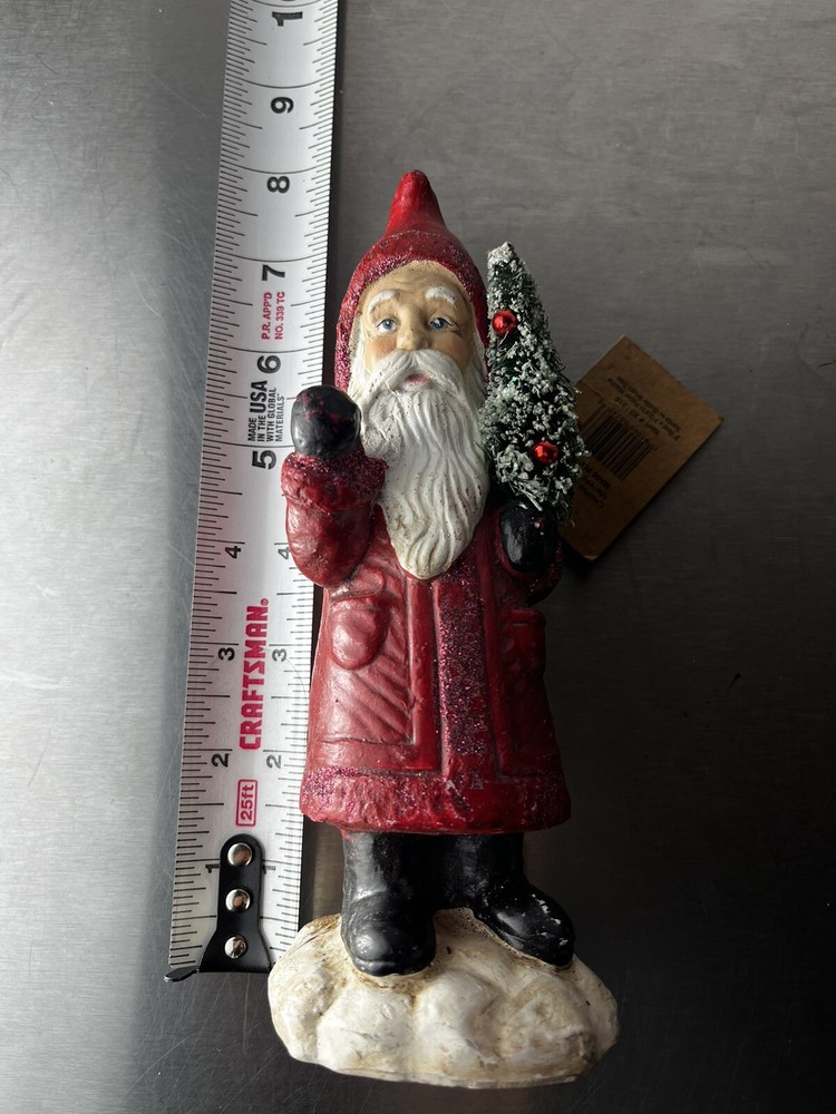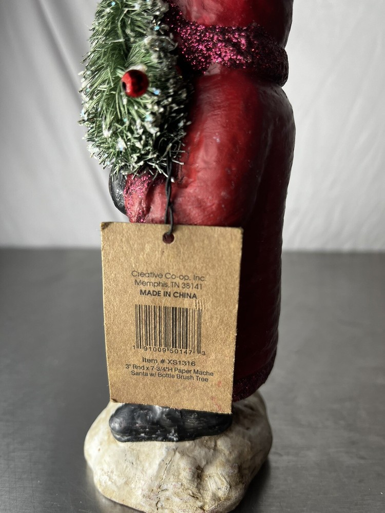 3” Rnd X 7-3/ 4” H Paper Mache Santa w/ Bottle Brush Tree.