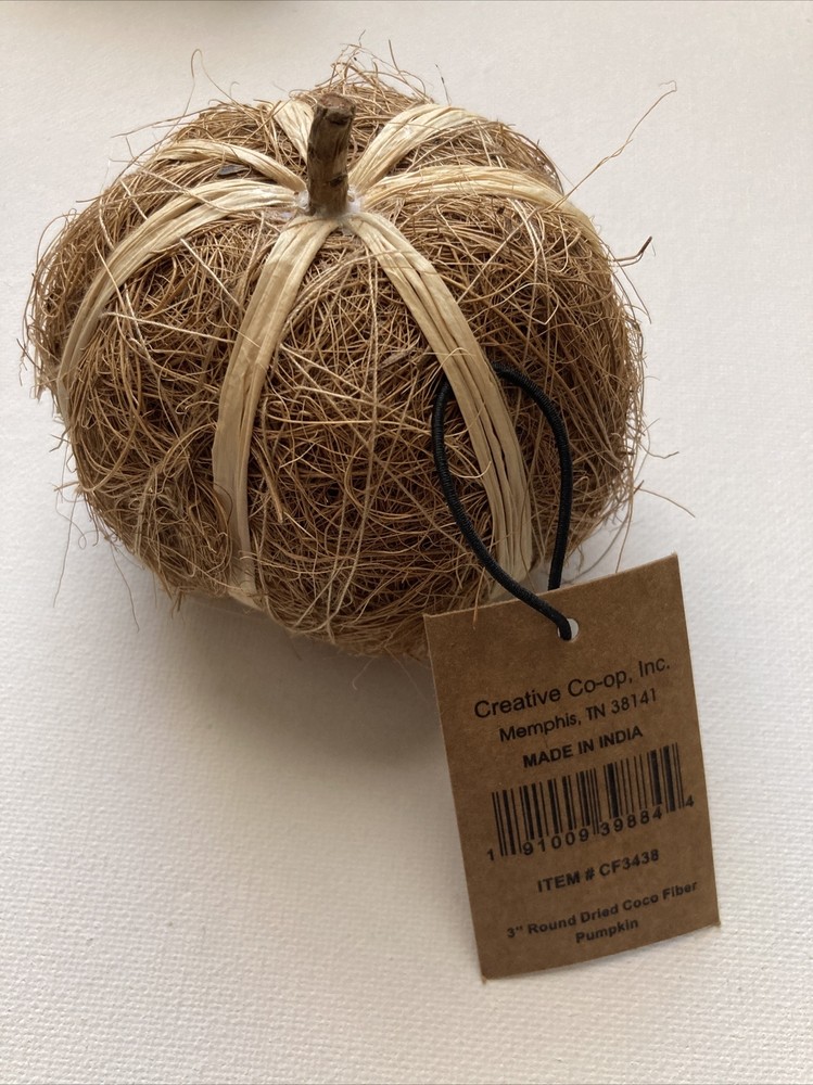 Add a touch of autumn charm to your home with this Creative Co-Op 3" Round Coco Fiber Pumpkin Fall Decor. The pumpkin-shaped decor is made of high-quality coco fiber material in brown color, measuring 3 inches in diameter. Ideal for celebrating the fall season, this pumpkin decor features a pumpkin theme and is perfect for any occasion. Whether you're looking to decorate your front porch, mantel, or tabletop, this Creative Co-Op decor is a great addition to your fall decor collection. Its brand is well-known for its high-quality products and this pumpkin-shaped decor is no exception.