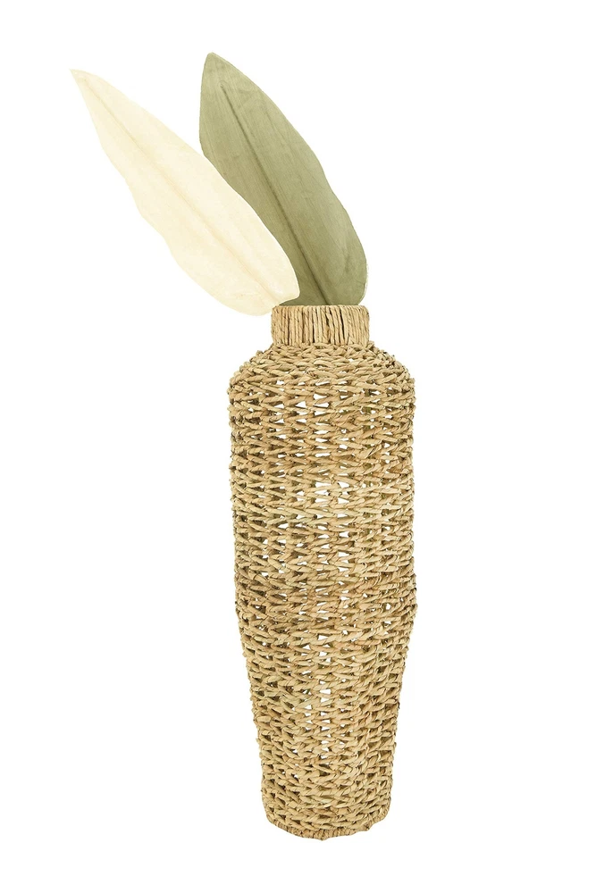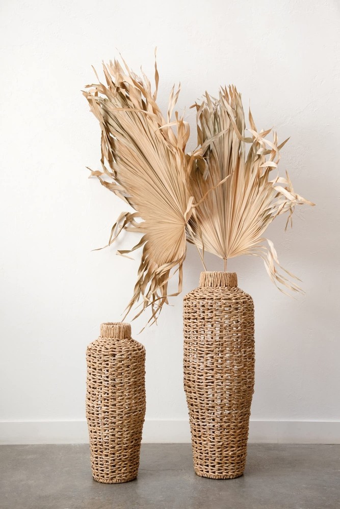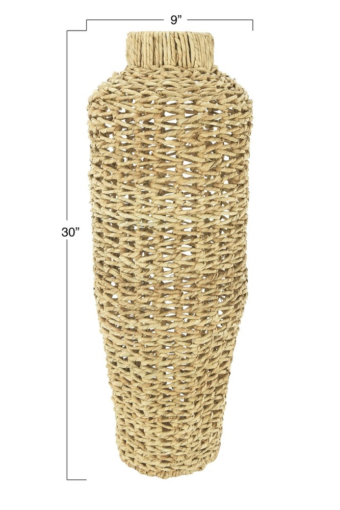 Creative Co-Op 30" H Handwoven Water Hyacinth & Rattan Floor Vase Product Details Size: 30" Brand: Creative Co-Op MPN: DF3152 UPC: 191009329671 EAN: 0191009329671 Material: Water Hyacinth Color: Beige Brand: Creative Co-Op Product Dimensions: 9"W Shape: Round Material: Water Hyacinth Color: Beige Brand: Creative Co-Op Product Dimensions: 9"W Shape: Round Style: Tropical Special Feature: Handmade Pattern: Solid Theme: Botanical Recommended Uses For Product: Decorative Room Type: Dining Room Finish Type: Unfinished Number of Pieces: 1 Occasion: Women, Mother's Day, Wedding, Graduation Embellishment: Rattan Installation Type: Decorative Mounting Type: Floor UPC: 191009329671 Manufacturer: Creative Co-Op Item Weight: 2.84 pounds Country of Origin: Philippines Item model number: DF3152 Finish types: Unfinished Assembly required: No Warranty Description: None. Batteries required: No Included Components: Vase This water hyacinth vase will make a great decorative accent without the addition of botanicals Narrow opening will gently hold your delicate dried botanicals Hang a decorative tassel around the neck for added color 9"L x 9"W x 30"H Perfect for the waterfront home, this 30 inch high water hyacinth vase is a beautiful addition to a tropical décor. Place a few dried or artificial tall botanicals inside and display near a woven basket full of colorful woven rattan spheres. To add an extra touch of color, place on a brightly colored round rug.