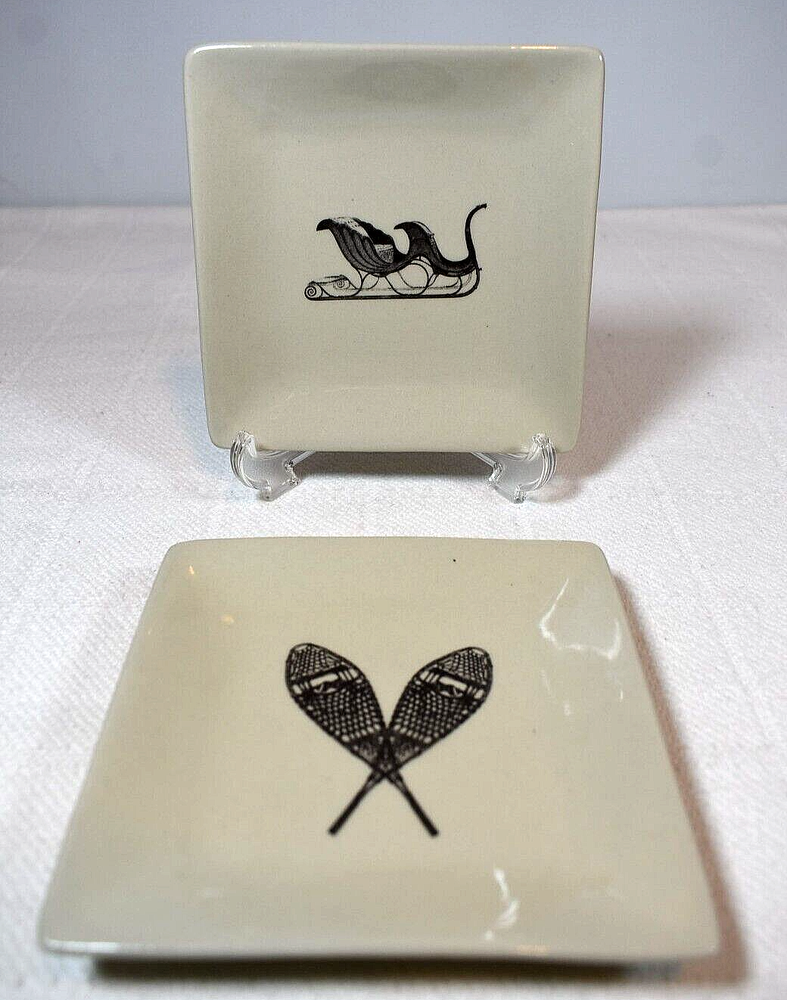ATTENTION BUYERS: Thank you for Shopping with us! Smoky Mountains Treasure will ALWAYS ship your items on time, or before—with tracking, But please remember we have NO CONTROL over shipping once packages have been passed off to the shipping company. (USPS, UPS or FedEx) We appreciate your understanding of this truth and encourage you to check the tracking on your packages for updates. Please contact us with any questions. We’re here to help, and truly value your business. Have an Amazing, Adventure Filled Year!!! 100% A M E R I C A N SELLER FAST, CAREFUL, EXPERT SHIPPING! Creative Co-Op 5" Square Cream Stoneware Plates, Set of 2 - Sleigh & Snowshoes ~ Beautifully Made Set of Small Square Serving Plates in Soft Cream. Faux Pencil Drawings of a Brown Old Fashioned Two-Seater Sleigh and a Brown Pair of Beavertail Style Snowshoes. ~ Perfect for Entertaining... A Great Individual Serving Dish for Appetizers, Goodies, Candy or Small Desserts. ~ Made of Glossy Stoneware with a Sloped Side. Drawings are either Painted or Pressed? Dishwasher, Microwave and Oven Safe. Made in China for "creative co-op". ~ ITEM(S) EXACTLY AS SHOWN IN THE PICTURES. VERY GOOD PRE-OWNED CONDITION. No Chips, Cracks or Fleabites. Some Normal Usage Wear and Base has some Scuffs and Manufacturer's Imperfections. Other than that, Clean, Disinfected and Ready to Use or Display. ~ Dimensions are as Follows... (all measurements approximate) ∙ Plates are 5" by 5" wide by about .75" tall at edges. ~ Shipped with USPS Ground Advantage or Priority Mail SHIPPING. SEE ALL PICTURES FOR FULL ITEM CONDITION AND DETAILS. IF YOU HAVE ANY QUESTIONS, PLEASE DON'T HESITATE TO ASK. THE NECESSARY STUFF... SELLER RESERVES THE RIGHT TO CHANGE SHIPPING CARRIERS AS LONG AS IT DOESN'T ADD TO SHIPPING COST OR THE LENGTH OF BUYERS DELIVERY TIME. IF THIS IS A CONCERN, PLEASE CONTACT SELLER BEFORE MAKING THE PURCHASE SO A MUTUALLY AGREED UPON CARRIER CAN BE CHOSEN. BE ADVISED... If an item is returned for the reason 'Item not as described', this type of return will be verified through eBay to protect both the buyer and the seller. Photos of all items are taken at time of shipping, the item has been marked and its SKU noted to expedite any claims. RETURN POLICY: Most items we sell can be returned to us within 30 days as long as all items included in the sale are sent back in the exact same condition--with original box & packaging materials and tags if applicable--as they arrived to the buyer in. Buyer Pays Return Shipping. Original Shipping is Not Refunded Unless Item Included Free Shipping. We strive for positive 5 star feedback from all our buyers, and would appreciate you taking a moment to leave feedback. If you feel for any reason we have not earned a positive 5 star feedback, please send us a message directly before leaving any feedback or opening a case with Ebay. We will endeavor to fix your issue within 24 hours, which is much faster (1 day versus 7 days) than opening an EBAY case. We Recycle Our Boxes and Envelopes!!! (NOTE: Because most of our items come from outside sources we cannot know if they've come from a pet-free or smoke-free home. We do try to clean our treasures the best we can, but if allergies are a concern, please consider this fact before making a purchase. And as always, we will answer any questions as best we can.) THANK YOU in advance for your thoughtful attention.