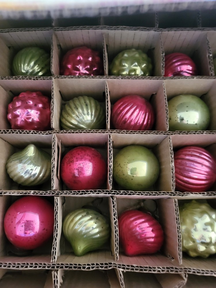 Creative Co-Op 72" L Embossed Mercury Ball Ornament, Red & Green Glass Garlands. Condition is New. Shipped with USPS Ground Advantage....