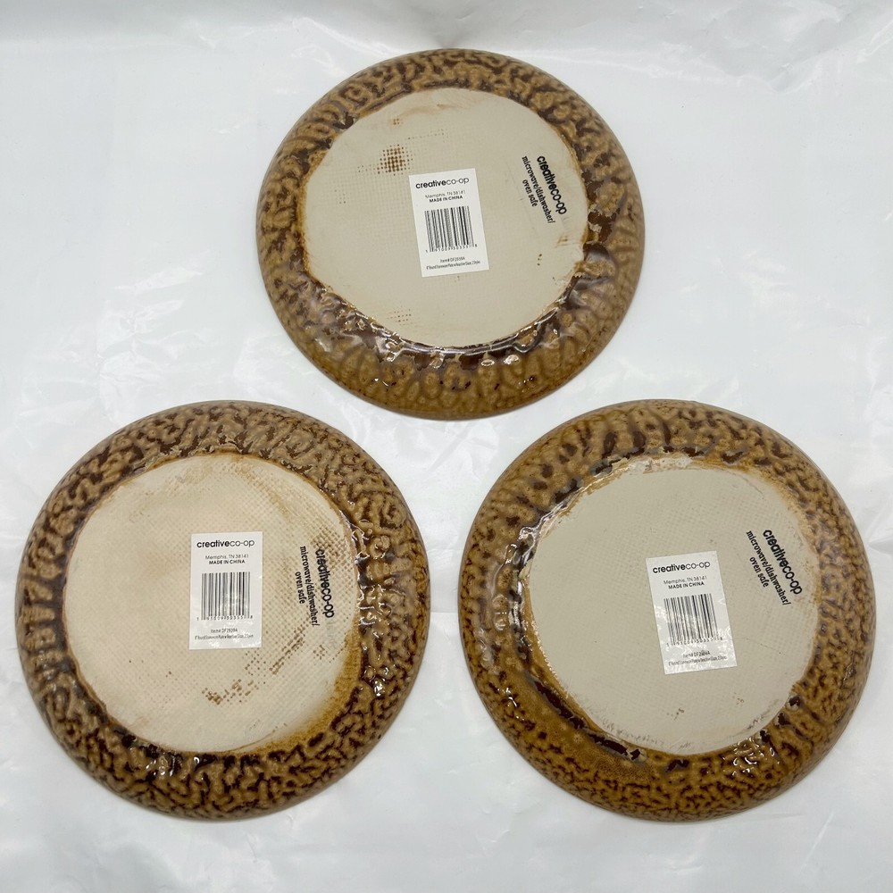This is a set of three 8" round stoneware plates by Creative Co-Op, featuring a stunning reactive glaze finish. Each plate is unique, with a visually split design: One half has a grayish-brown tone with light speckles. The other half features a coral tone with warm brown squiggle accents. Details: Dimensions: 8" diameter, 0.75" tall. Weight: Each plate weighs approximately 1 lb 3.1 oz, with a total set weight of 3 lbs 9.3 oz. UPC: 191009303558. Item #: DF2939A. Condition: These plates are new, but one plate has a small spot of bubbles, and another has a dark spot on the gray/brown side. Both are manufacturing marks that add character and uniqueness to the set. Please see photos for exact condition π« This set is perfect for serving salads, desserts, or snacks and makes an elegant addition to any table setting. π Thank you for considering this item! Please review the photos closely as they show the exact item & condition. If you have any questions, feel free to message meβIβm happy to help! π Items will be packed with care & shipped out asap! ππ© Also, Iβll gladly refund any significant shipping overages & charge only whatβs needed to ship your items safely! π« Please verify your shipping address before purchasing, as I can't assume responsibility for re-shipping due to an incorrect address. π Interested in more? Check out my other listings! Iβm happy to combine shipping for multiple items. π Thanks for stopping by! Audrey // Tangy.Treasures ππ