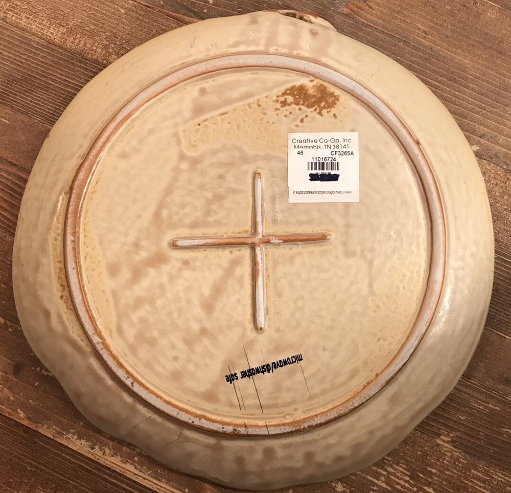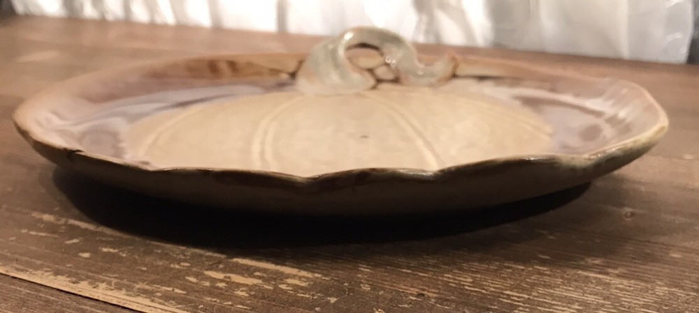 Add a touch of autumnal charm to your table setting with this Creative Co-Op 9” round stoneware pumpkin-shaped plate. Crafted from durable and long-lasting stoneware material, this plate features a beige color that is perfect for any Halloween-themed dinner party. The plate is perfect for serving your favorite fall dishes and is sure to impress your guests with its unique design. This collectible plate is a must-have for any Halloween or seasonal decorations collector. It is ideal for serving desserts, appetizers, or even as a decorative piece on your shelf. The plate is branded with Creative Co-Op, a trusted name in the collectibles industry. Add this pumpkin-shaped plate to your collection today! Measurements approximately: 9” wide 7/8” tall excluding stem 1-1/4” tall including stem