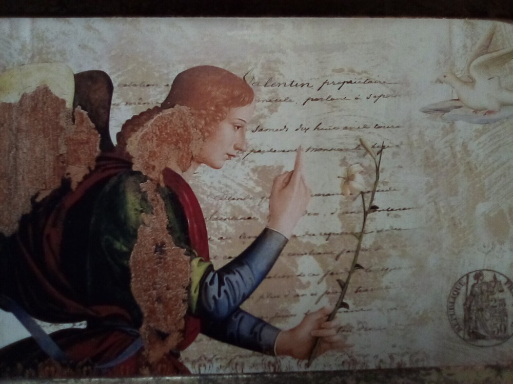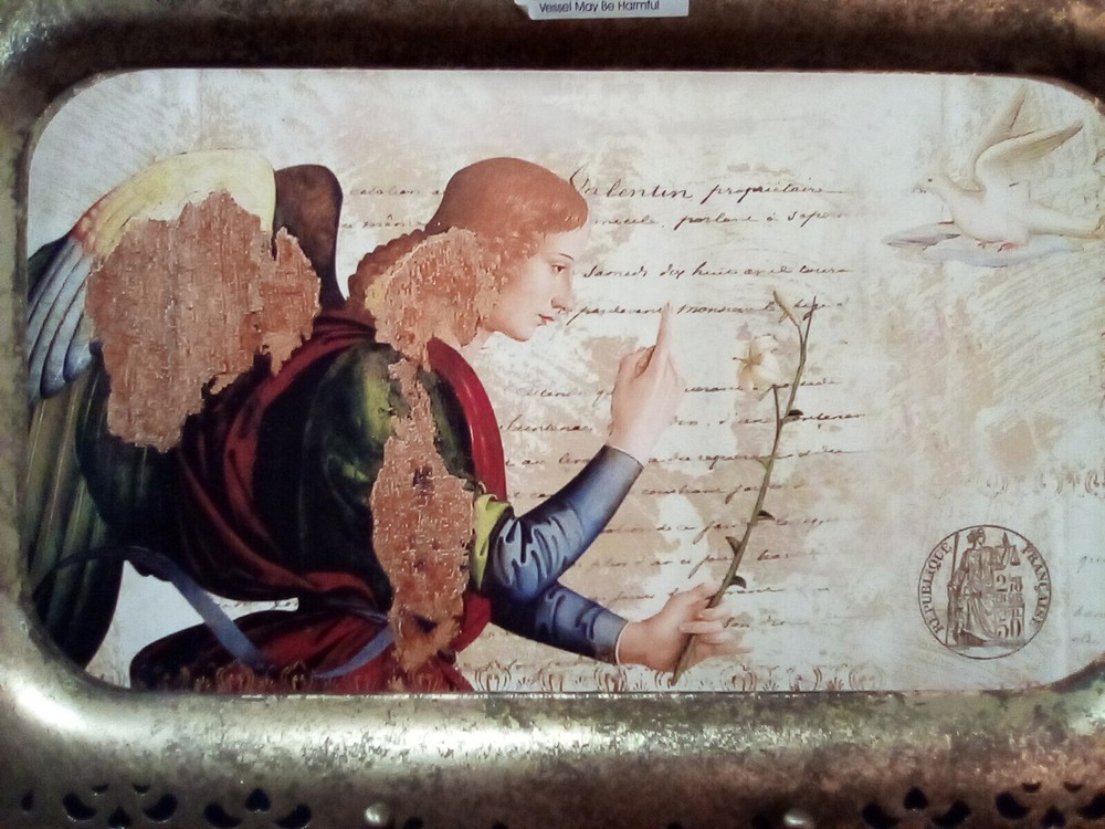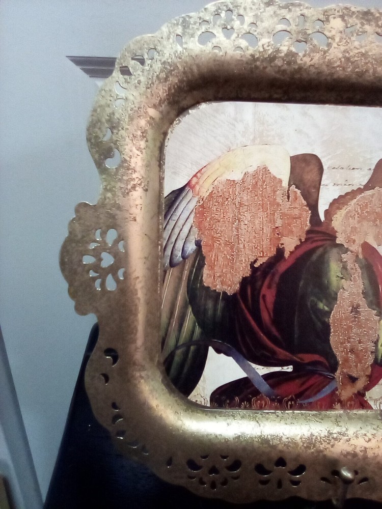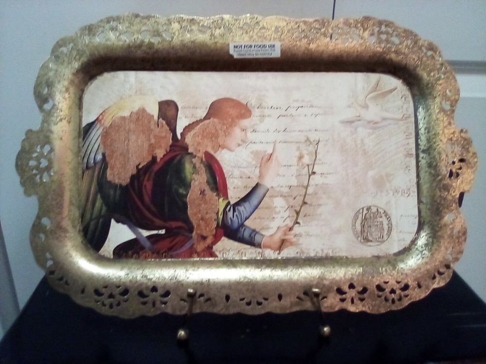 Creative Co-Op Metal Serving Tray Antique Style Reticulated Border with Angel and Dove Footed Tray Approximately 15 3/4" × 10 1/4" Not For Food Use New With Tag...