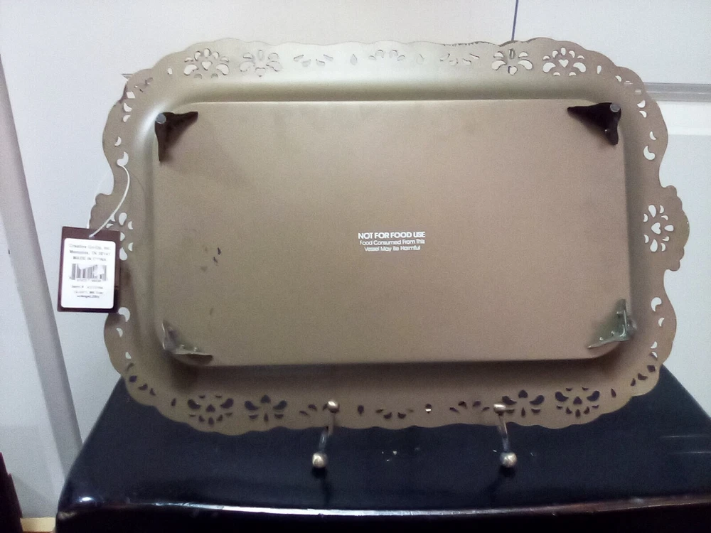 Creative Co-Op Metal Serving Tray Antique Style Reticulated Border with Angel and Dove Footed Tray Approximately 15 3/4" × 10 1/4" Not For Food Use New With Tag