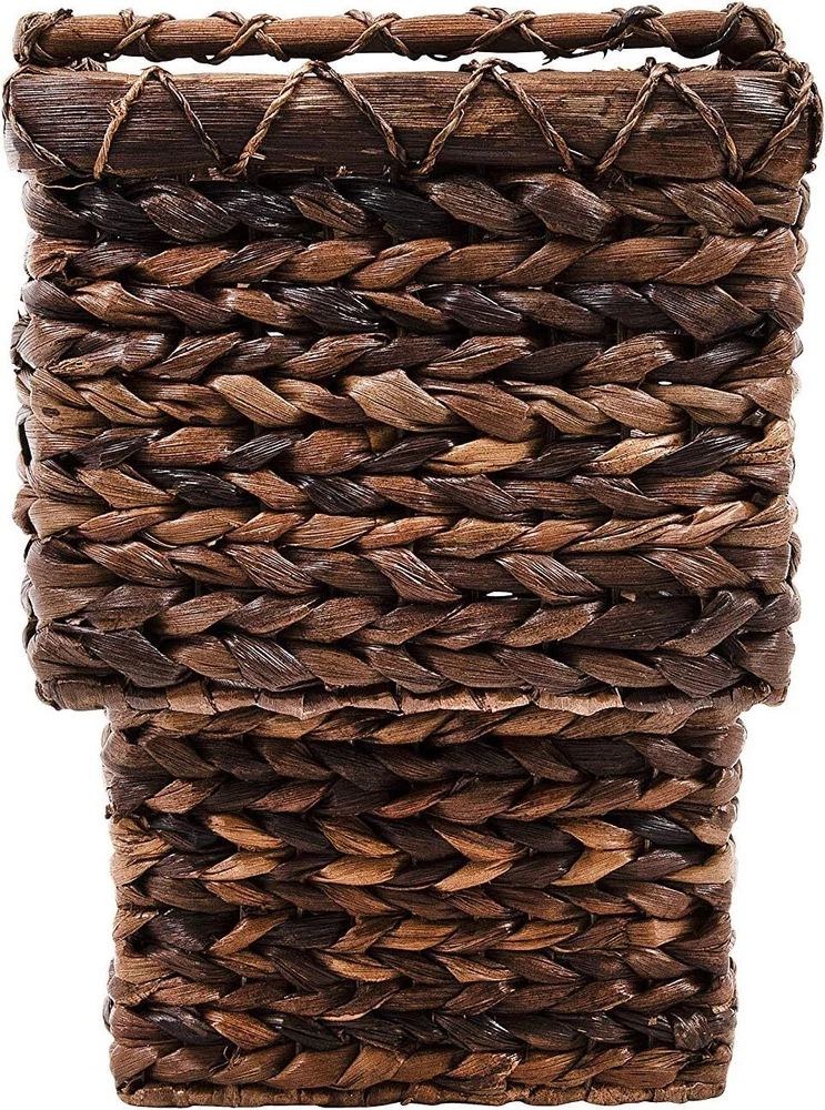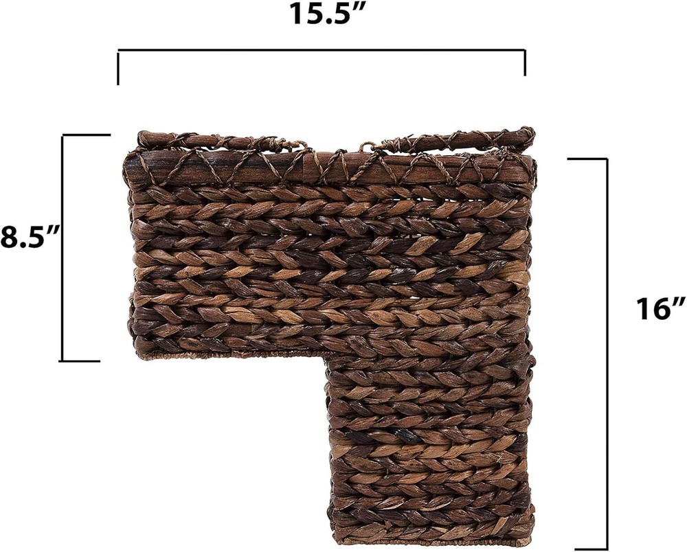 16 inches L x 10 inches W x 15.5 inches H - BacBac leaf - Storage Basket Core Parameters Material: BacBac leaf, rattan, and wire Size: 16 inches L x 10 inches W x 15.5 inches H (40.6 cm L x 25.4 cm W x 39.4 cm H) Color: Brown Finish Type: Natural Shape: Rectangular Technical Specifications • This stylishly functional stair basket features durably woven BacBac leaf around a sturdy wire frame, finished with two handles • Place this cleverly designed storage basket on a staircase to store heavily used items, or to place odds and ends that need to be transported to another floor • Wipe clean with dry cloth • Made from BacBac leaf, rattan, and wire • 16 inches L x 10 inches W x 15.5 inches H Package Information Package Weight: 3.08 lbs (1.4 kg) Package Dimensions: 16 cm x 15.5 cm x 16 cm (6.3 inch x 6.1 inch x 6.3 inch)