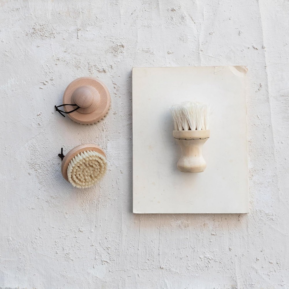 Creative Co-Op Beech Wood Body Brush with Round Handle and Leather Natural Product Details Product Dimensions : 4 x 4 x 2.75 inches; 4.22 ounces Item model number : DF9267 UPC : 191009632054 Manufacturer : Creative Co-Op Country of Origin : China Material: Beech Wood, Sisal Bristle Brand: Creative Co-Op Color: Natural Model Name: Creative Co-Op Beech Wood Body Brush with Round Handle and Leather Tie, Natural Power Source: manual A smooth and sturdy body brush made of beech wood with a round handle and a leather tie in natural color A rustic and chic accessory for any bathroom style, from coastal to boho, from farmhouse to Scandinavian, from beach to round Ideal for gently scrubbing and exfoliating the skin while showering or bathing; Hang it by the leather tie for easy storage and drying Made of beech wood that is eco-friendly, durable, and water-resistant Made of 100% beech wood that is eco-friendly, durable, and water-resistant This beech wood body brush with round handle and leather tie in natural color is a practical and beautiful way to pamper the skin. It features a smooth and sturdy beech wood material that is eco-friendly, durable, and water-resistant. The brush has a round handle that fits comfortably in the hand and a leather tie that adds a touch of elegance and convenience. Use this body brush with soap or body wash to create a rich lather and massage the body. It has soft and flexible bristles that gently scrub and exfoliate the skin, leaving it smooth and refreshed. It has a natural color that will match any bathroom decor. Hang it with the leather tie for easy storage and drying. This body brush is a rustic and chic accessory that will enhance the shower or bath experience.