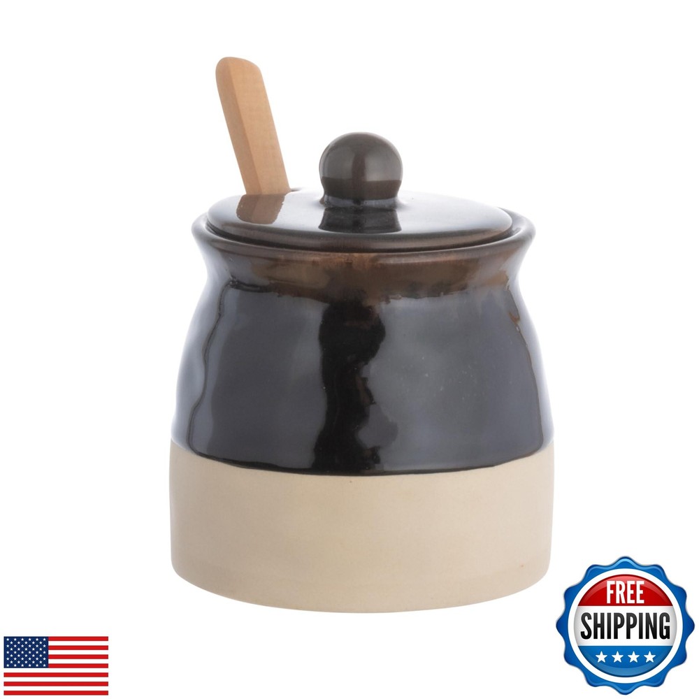 Creative Co-Op Black Stoneware Sugar Pot with Lid and Wood Spoon Features Beautiful reactive glaze finish on top with natural bisque on the bottom Includes wood spoon Neutral colors match with any other kitchen accessories Each one will vary 3-1/2" Round x 4-1/4"H Shipping Free & Fast Shipping: We offer free shipping to most of the USA with a normal delivery time of 3-7 days. However, due to the current situation, additional delivery time (up to 3 weeks) may be required for some items. Alternative Carriers: We may use alternative carriers (e.g., USPS, FedEx, UPS) to ensure your package arrives safely and on time. Due to the use of multiple carriers, we are unable to provide a tracking number automatically. Handling Time: Orders are processed and shipped within 1-2 business days of receiving cleared payment. Shipping Restrictions: Shipping to Alaska, Hawaii, Puerto Rico, Guam, and other US territories may incur shipping charges or delivery restrictions. Please contact us before ordering, or your order can be refunded/cancelled. State Restrictions: Certain items may not be shipped to California due to state regulations. Contact for Tracking Updates: If you require tracking updates or have any concerns about the delivery of your order, please feel free to contact us, and we will be happy to assist you. Return Policy 30-Day Hassle-Free Returns: If you are not completely satisfied with your purchase, you can return the item for free within 30 days of receiving it for a full refund or exchange. Easy Return Process: Contact us, and we will provide you with a prepaid return shipping label and detailed instructions. No Restocking Fee: There are no restocking fees for returns. However, the buyer is responsible for return shipping costs if the return is not due to a seller's error. Refund Processing: Refunds will be processed within 1 business day of receiving the returned item in its original condition. Payment We accept all major credit cards, PayPal, and Apple Pay for your convenience. Your payment information is secure and encrypted to ensure a safe and seamless transaction. Please complete your payment within 3 days of purchase to avoid any delays in shipping. Feedback Your feedback is extremely important to us. We strive to provide the best products and customer service possible. If you are satisfied with your purchase, please take a moment to leave us a positive review. If you have any concerns or issues with your order, please contact us before leaving negative feedback. We are committed to resolving any problems and ensuring your satisfaction. Contact Us If you have any questions or concerns, please feel free to reach out to our customer support team. You can contact us through the eBay messaging system. We are available Monday to Friday, 9:00 am to 5:00 pm EST, and we will do our best to respond to your inquiry within 24 hours. Thank you for supporting our small family business!