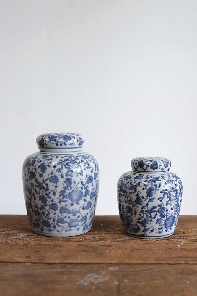 Creative Co-Op Blue & White Ceramic Ginger Jar with Lid Item Description This delicately crafted ginger jar showcases a modern take on a classic silhouette with an intricately painted pattern and semi gloss finish Removable lid allows for the storage of teabags or odds and ends, and also doubles as an eclectic vessel for displaying dried or faux florals Do not use harsh cleansers or polish when cleaning Made from 100% ceramic 5.5 inches L x 5.5 inches W x 6.5 inches H › See more product details Intentionally curate an elegant, storied space with Creative Co-Op's thoughtfully crafted collection of decorative jars and canisters, designed to transform clutter while adding depth and texture to any space. Peruse a vast selection of unique, display-worthy pieces created to stylishly streamline a space of any design scheme, including lidded containers, ginger jars, stoneware vessels, and so much more. Choose from a wide array of materials from hammered aluminum and paper mache to stoneware and ceramic, and styles from mid-century modern and coastal to classic farmhouse and cottage. Elegantly stow unsightly odds and ends, or display treasured trinkets with decorative storage that is sure to impress. Payment fast and free shipping Shipping safe payment via ebay . Return 30 Day's returns