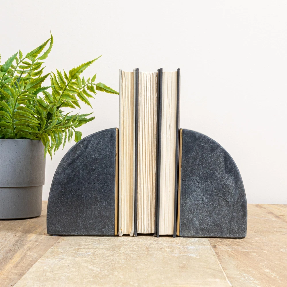 Creative Co-Op Boho Arched Semicircle Marble Brass Detail, Set of 2, Black Bookend This elegant set of bookends features naturally variating marble in arched, half- semicircle silhouettes, finished with complementary brass stripes Showcase this eye-catching set of marble bookends atop a mantelpiece, console table, or bookshelf for a touch of boho sophistication Please note that this set is crafted from genuine marble, and each piece will vary slightly in color and grain Made from 100% genuine marble Each bookend measures 5.5 inches L x 1.5 inches W x 7 inches H Shipping We offer FREE shipping on all orders! We ship within Three business days of payment, usually sooner. We use a selection of shipping services such as UPS, FedEx, USPS etc. We only ship to the lower 48 states, no APO/FPO addresses or PO Boxes allowed. Local pickups and combined shipping options are not provided at this time. Return You can return a product for up to 30 days from the date you purchased it. Any product you return must be in the same condition you received it and in the original packaging. Please keep the receipt. Payment We accept payment by any of the following methods: PayPal Please pay as soon as possible after winning an auction, as that will allow us to post your item to you sooner! Feedback Customer satisfaction is very important to us. If you have any problem with your order, please contact us and we will do our best to make you satisfied. Contact Us If you have any queries, please contact us via ebay. We usually respond within 24 hours on weekdays. Please visit our eBay store to check out other items for sale! Thank you for shopping at our store.
