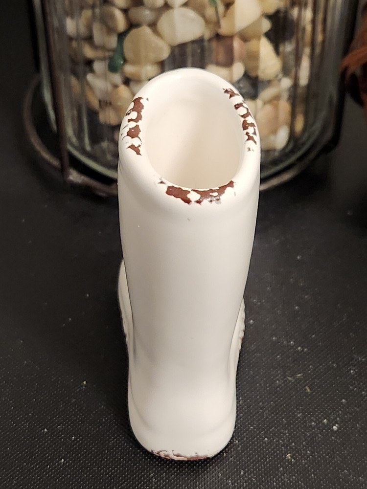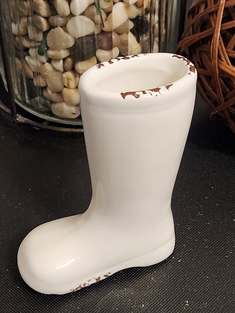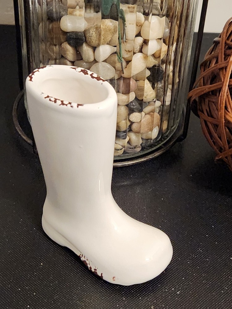 This Stoneware boot is just the cutest! It will definitely create a unique display and catch the eye. Made of stoneware, this petite boot planter is white in color. Drop in a few of your favorite buds and line up on your windowsill for all to admire or create a small herb garden. Personally, I like them in pairs, but that’s just me. 4" high At the time of listing, I also have 2 Burgundy boots that are listed separately. Combined shipping is done in the form of a refund once the orders are packed.