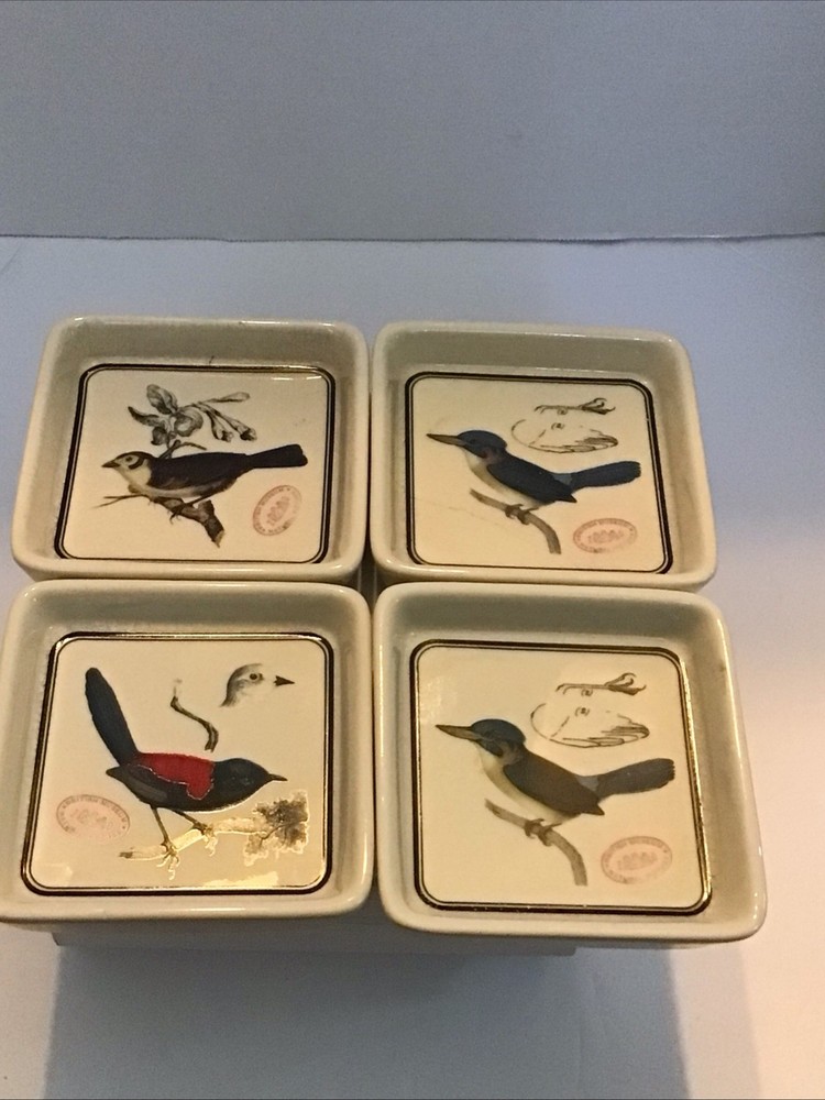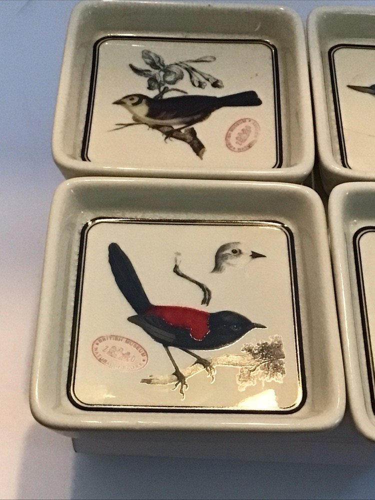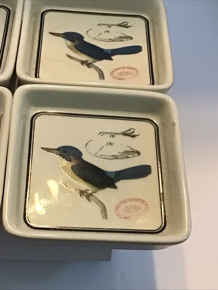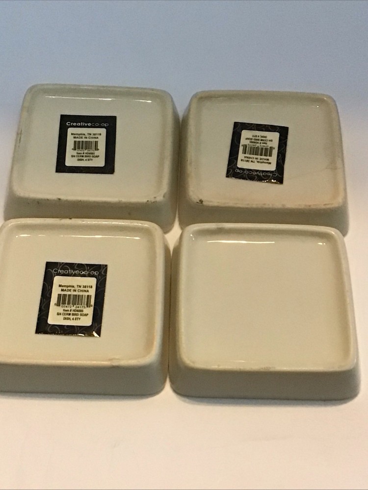 The Creative CoOp British Museum 4 Ceramic Bird Soap Dish is a retro-inspired decorative accessory perfect for vintage and bird-themed home decor. These small square dishes feature a multicolor bird and foliage pattern, adding a whimsical touch to any space. Made of ironstone with a glossy finish, these commemorative stackable dishes are ideal for displaying keys, coins, candy, or soap in a unique and charming way. Perfect for all occasions, these handmade vintage pieces are a one-of-a-kind addition to your home.