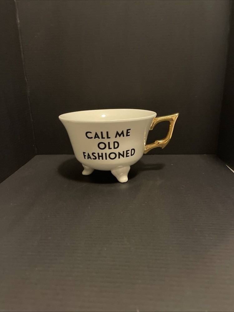 Creative Co-Op "Call Me Old Fashioned" Funny Humor Footed Tea Cup w/ Gold Handle...