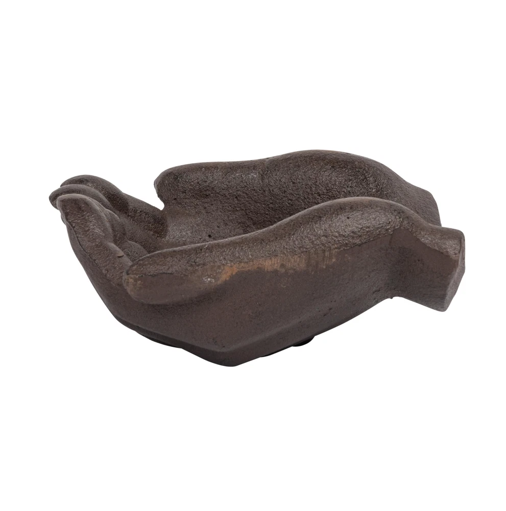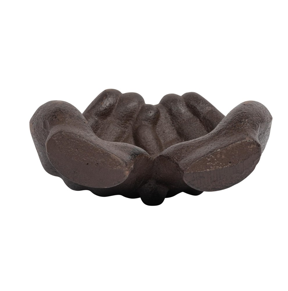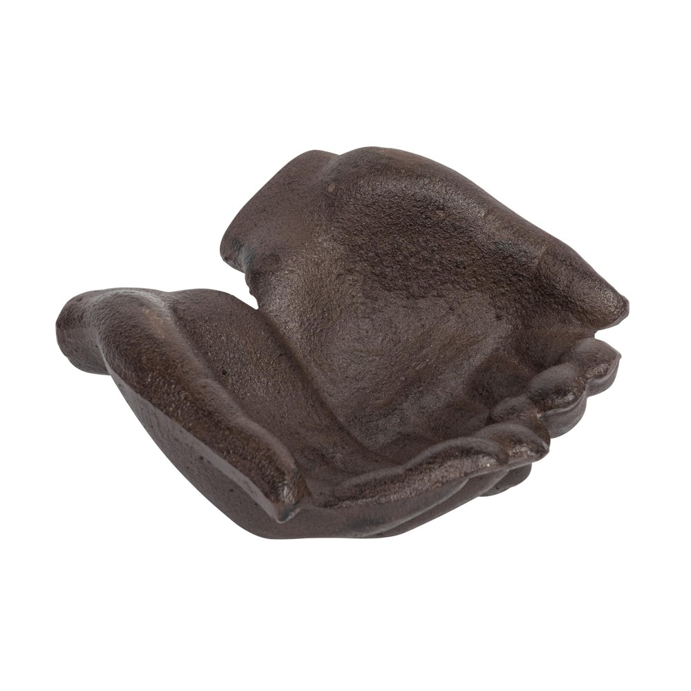 Creative Co-Op Cast Iron Hands Dish with Rust Finish Product Details Bowl Material: Cast Iron Number of Pieces: 6 Brand: Creative Co-Op Color: Rust Style: Rustic Bowl Material: Cast Iron Number of Pieces: 6 Brand: Creative Co-Op Color: Rust Style: Rustic Special Feature: Reusable Shape: Hand Specific Uses For Product: Candy Theme: Rustic Pattern: Solid Product Care Instructions: Wipe clean with a dry cloth; do not submerge in water or wash Is Dishwasher Safe: No Is Microwaveable: No Material: Cast Iron, Iron Product Dimensions: 6.12"W x 2.62"H Occasion: Housewarming Global Trade Identification Number: 35 Manufacturer: Creative Co-Op Size: 6 1/4" UPC: 807472400235 Item Weight: 4.68 pounds Country of Origin: China Item model number: HD5974 Is Discontinued By Manufacturer: No Assembly required: No Batteries required: No Cast iron construction For decorative use only, not food safe Wipe clean with a dry cloth 5.75"L x 6.25"W x 2.5"H Now who wouldn't mind a helping hand. This cast-iron dish offers a pair of helping hands to hold everything from soap to jewelry or even your favorite candy. You can even place it in your garden to create a perfectly charming garden statue. A great way to give your decor settings a rustic accent.