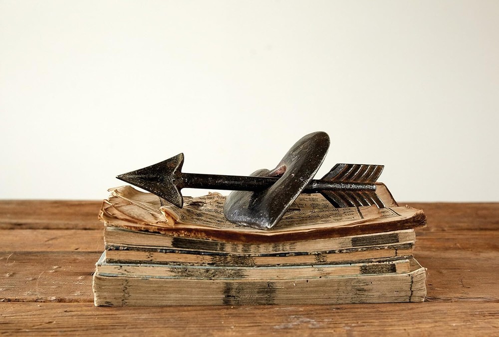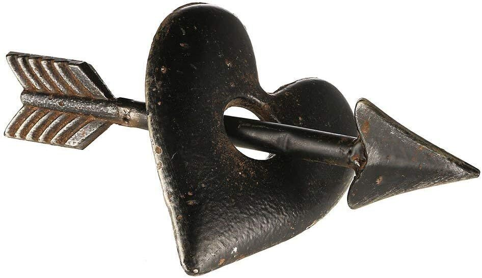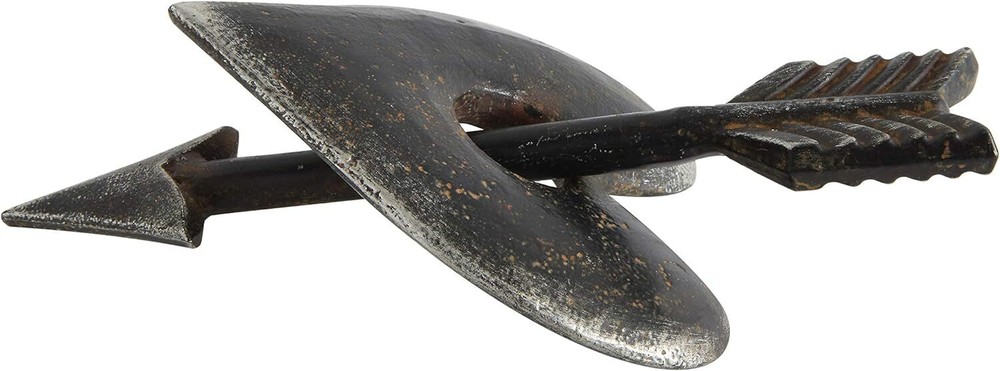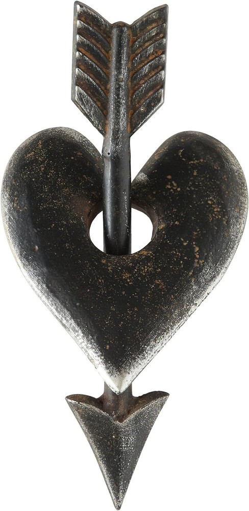 Creative Co-Op Cast Iron Heart & Arrow Decoration Product Details Product Dimensions: 4.87 x 3 x 10.12 inches Item Weight: 2.12 pounds Manufacturer: Creative Co-op Country of Origin: China Item model number: DA6643 Is Discontinued By Manufacturer: No Care instructions: Wipe Clean Assembly required: No Batteries required: No Included Components: Cast Iron Heart and Arrow Decoration Cast iron construction Heart is 4.75"R x 6.5"H Arrow is 10.25"L x .25"W x 1.75"H 10"L x 4.75"W x 3"H Distressed brown finish Cupid has done it again! This metal heart and arrow is a great accent piece and weighs a sturdy 3 lbs. The pieces do not separate but are also not connected. That makes it easy to find the perfect way to arrange it for display.