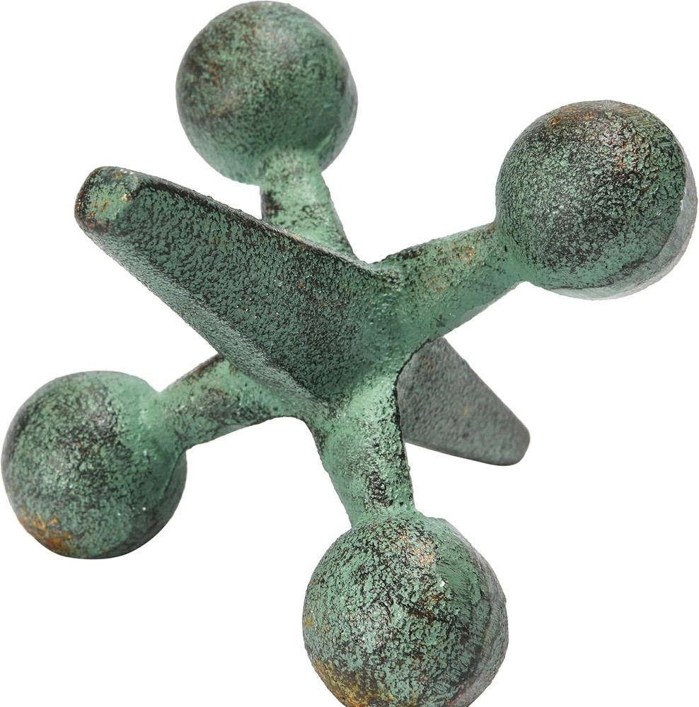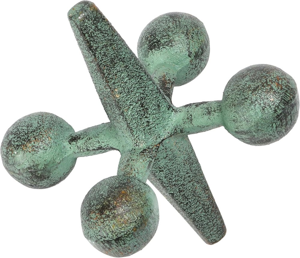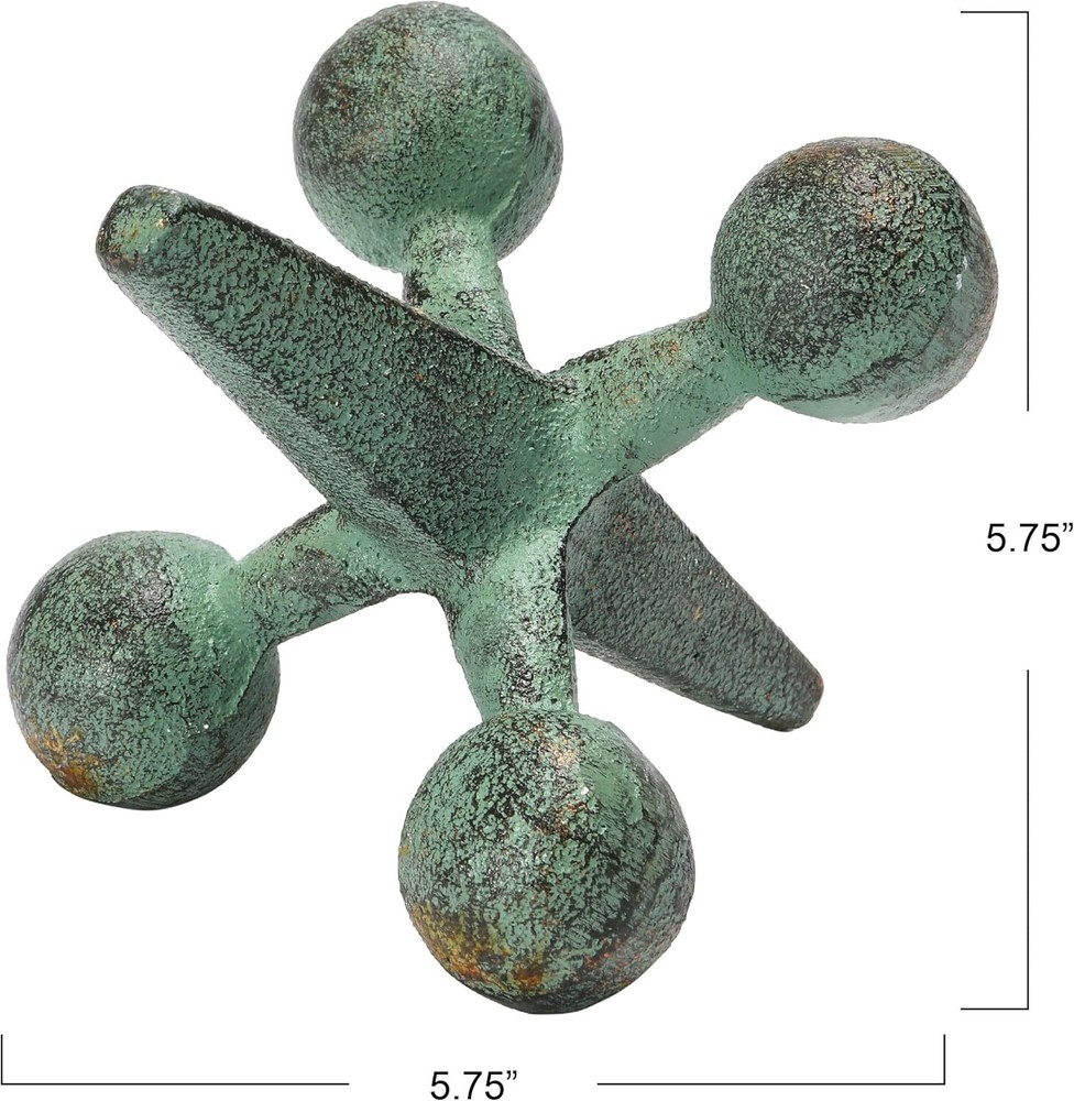 This playful cast iron jack accent showcases robust cast iron with a patina finish Cast iron jack shelf décor with patina finish Add a whimsical touch to a book shelf or coffee table with this rustic decorative accent Use as a decorative shelf décor accent or book end Jack measures 5.75" H x 5.75" L x 5.75" W