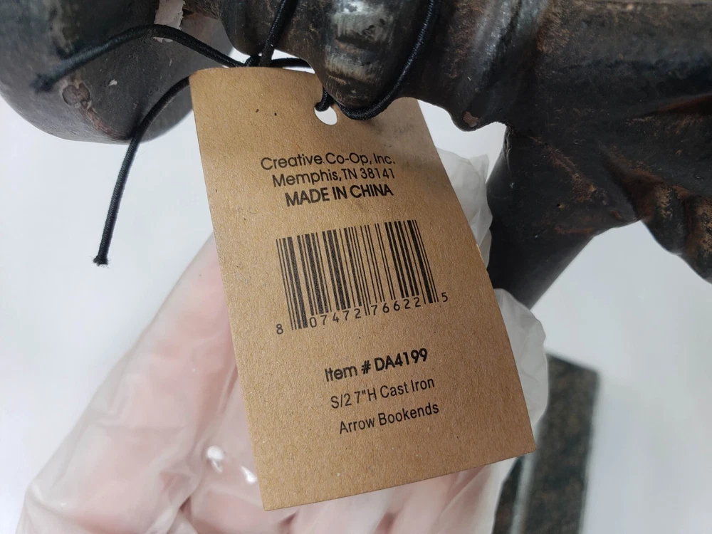 Creative Co-Op Cast Iron Metal Bookends DA4199 No Arrowhead - ENDS OF ARROW ONLY Condition: NEW OPEN BOX - NO ARROWHEAD BOOKEND - X2 END OF ARROW BOOKENDS ONLY - ITEM IN RED X IS NOT INCLUDED - THIS ITEM WAS PREVIOUSLY PURCHASED FROM AMAZON AND RETURNED - WE PURCHASE AMAZON'S RETURNED ITEMS AND RESELL THEM ON EBAY - PLEASE SEE ALL PHOTOS FOR THE BEST DESCRIPTION OF THIS ITEM'S CONDITION PLEASE READ The product image is the actual item you will receive unless otherwise noted. We are a reseller and not able to provide specific fitment information. However, we can provide additional product specs so that you can determine if the item will work for you. mo_reclaimed_freight is not sponsored by or affiliated with the brand associated with the product being sold. SHIPPING Fast shipping is very important for us. Your order will be shipped within 1 business day upon full payment received. We only ship to the confirmed eBay address. We reserve the right to cancel any order for any reason at any time. We are not responsible for undeliverable addresses. Alaska, Hawaii and US Protectorate shipping available upon request. Buyer pays shipping calculated by location via eBay shipping tool. OVERNIGHT and 2 ND DAY AIR available at buyers expense. RETURNS We are not an authorized dealer of this product and any warranty included with the product may not be honored by the manufacturer. We offer a 30 day return policy and the buyer pays return shipping. We use eBay prepaid return labels for your convenience. FEEDBACK Your feedback is very important to us, after you receive your package and are satisfied with our services please leave us positive feedback. If you have any problem with your order / any questions, please send us a message before leaving any type of feedback. We will take care of you! Please visit our eBay store to check out other items for sale! Thank you for shopping mo_reclaimed_freight
