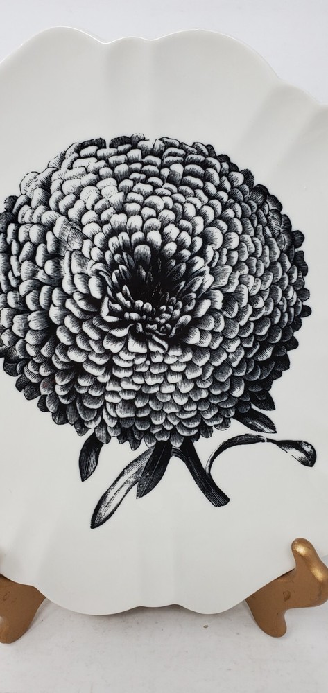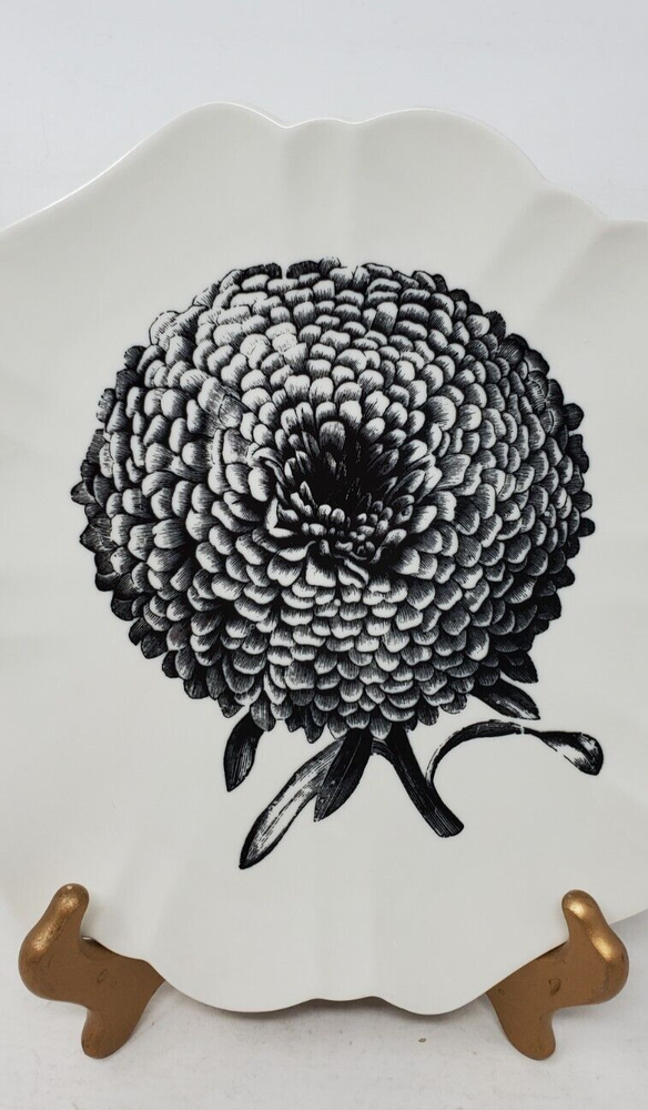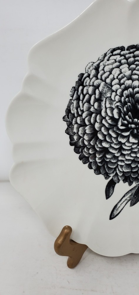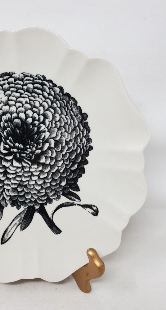 You are bidding on a pre-owned creative co-op black and white graphic floral themed plate. Plate is in very good condition with no cracks or chips or signs of use. Please inspect photos. Suitable for food use or display. I have other plates from this series and I can combine shipping!