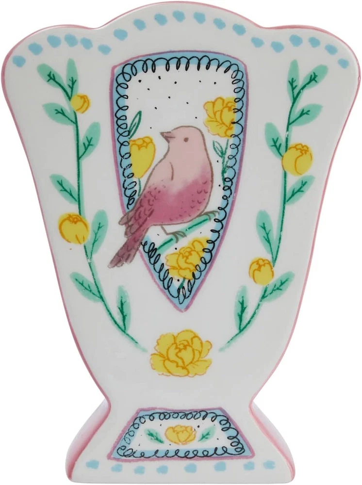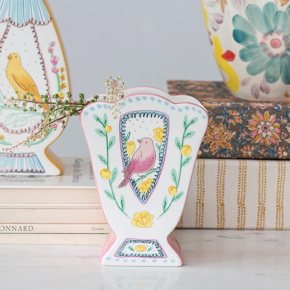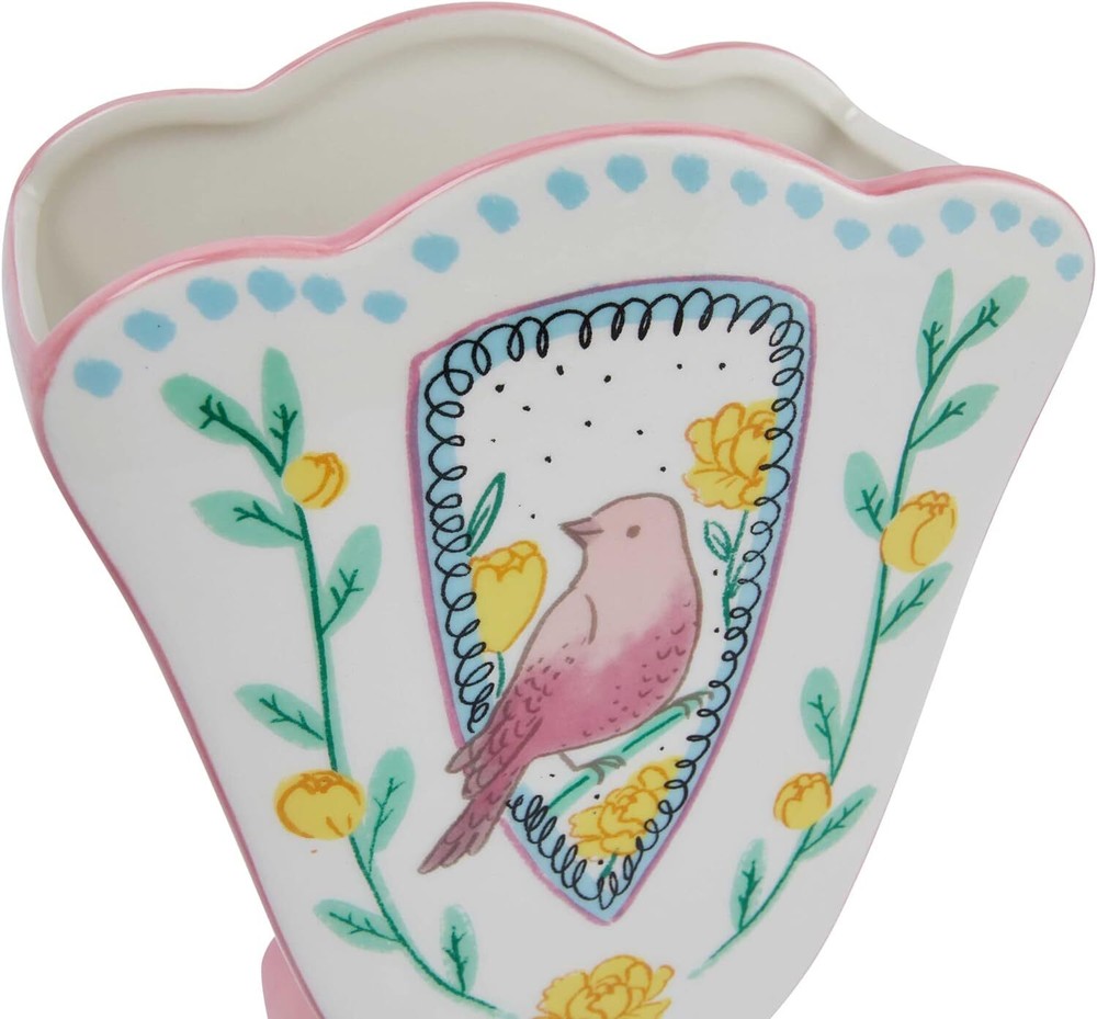 Creative Co-Op Ceramic Fan Shaped Painted Bird Design, Multicolor Product Details Material: Ceramic Color: Multicolor Brand: Creative Co-Op Shape: Figurine,Modern Style: Elegant Special Feature: Wide Mouth Theme: Bird,Flora,Space Recommended Uses For Product: Decorative Room Type: Bathroom, Living Room, Bedroom Finish Type: Hand Painted Number of Pieces: 1 Occasion: Women, Mother's Day, Wedding, Graduation Installation Type: Decorative Mounting Type: Table Manufacturer: Creative Co-Op Package Dimensions: 10.28 x 8.62 x 5.08 inches Item Weight: 1.8 pounds Country of Origin: China Item model number: DF7229 Finish types: Hand Painted Batteries required: No Included Components: Vase This cottage-inspired ceramic vase showcases an elegant, fan shaped silhouette with a scalloped edge and hand-painted bird design Display in a living space of any style from cottage to garden Fill with dried seasonal flora, decorative branches, or simply display as a standalone accent Made from dolomite 6.25 inches L x 3.25 inches W x 8.25 inches H Our thoughtfully curated collection of vases showcases a wide array of silhouettes, textures, and hues designed to showcases seasonal flora, dried botanicals, faux fronds, or delicate blooms. Explore a vast selection of sizes, styles, and functions for the perfect artful accent, including decorative bottles, sculptural vessels, sets of bud vases, combination vase/candleholders, figurine vases, oversized urns, etched hurricanes, hand-blown glass statement-pieces, and so much more. Choose from a wide range of materials from stoneware and ceramic to etched mercury glass and reclaimed wood, and styles from mid-century modern and classic farmhouse to vintage glam and boho. Showcase freshly cut flower arrangements or dried flora inside pieces from this artfully crafted collection, or display alone as stylish statements.