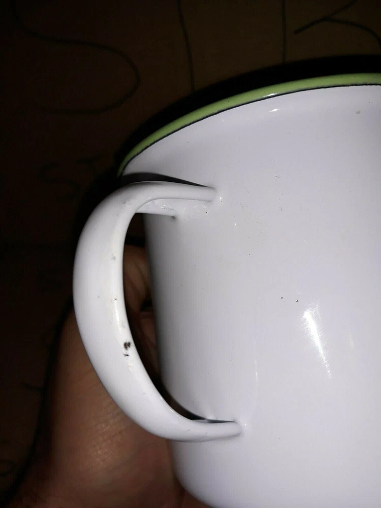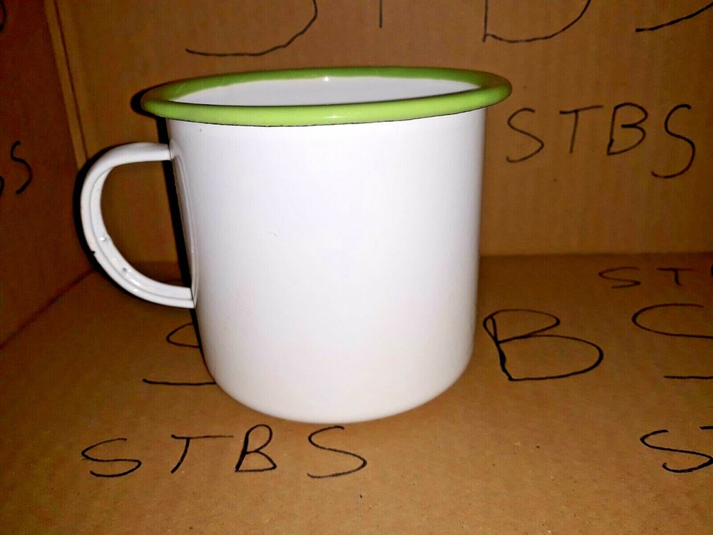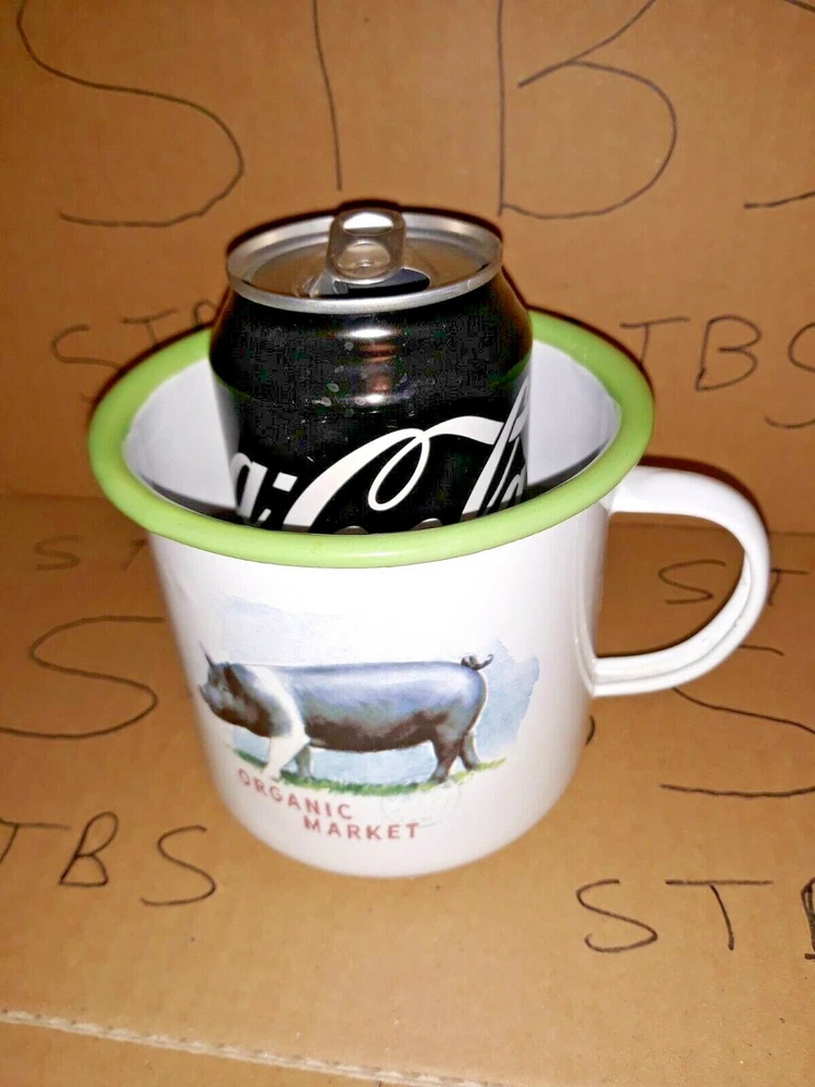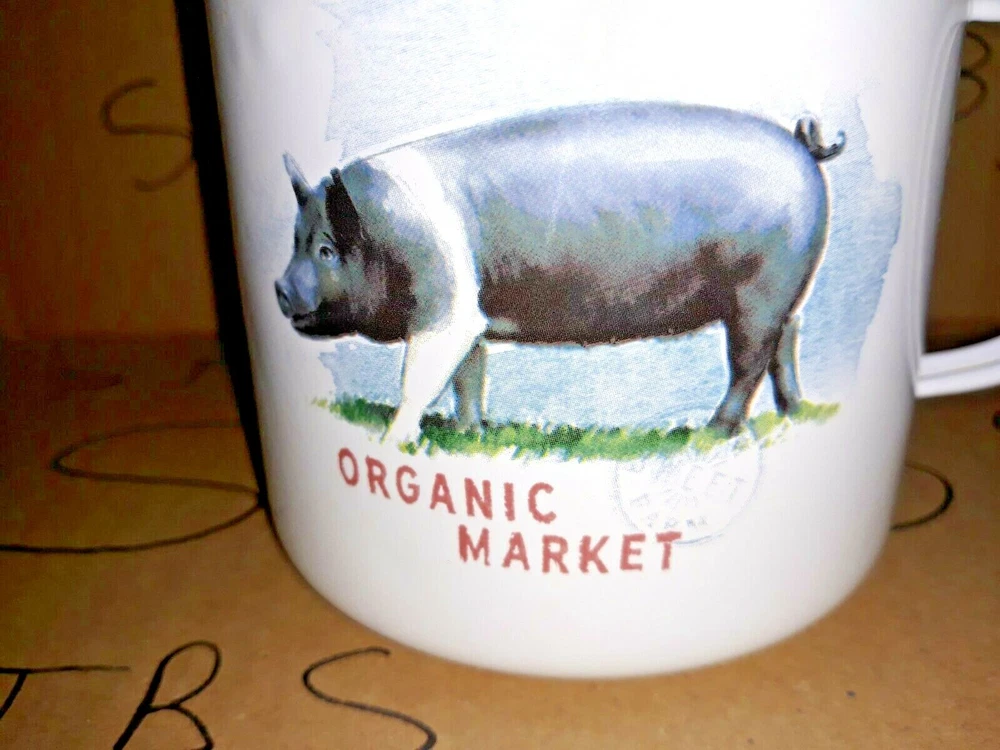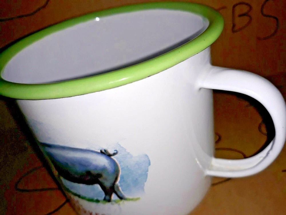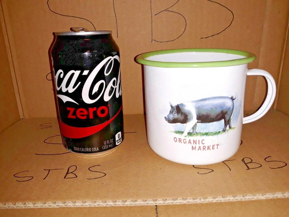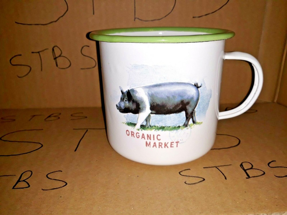 Up for sale is a PREOWNED CHAD BARRETT ORGANIC MARKET PIG DESIGN TIN MEATL ENAMEL WHITE MUG . Mug in great shape and seem to hardly been used at all ( SEE PICTURES ). Tiny bit of enamel missing on the handle as I tried to show in pictures 4, 5 and 6 but not sure if it is from damage or the manufacturing process! Mug you will receive is EXACTLY the one shown in the pictures. I believe the pictures speak for themselves. Any questions, ask? Thanks for looking. Combine shipping available.