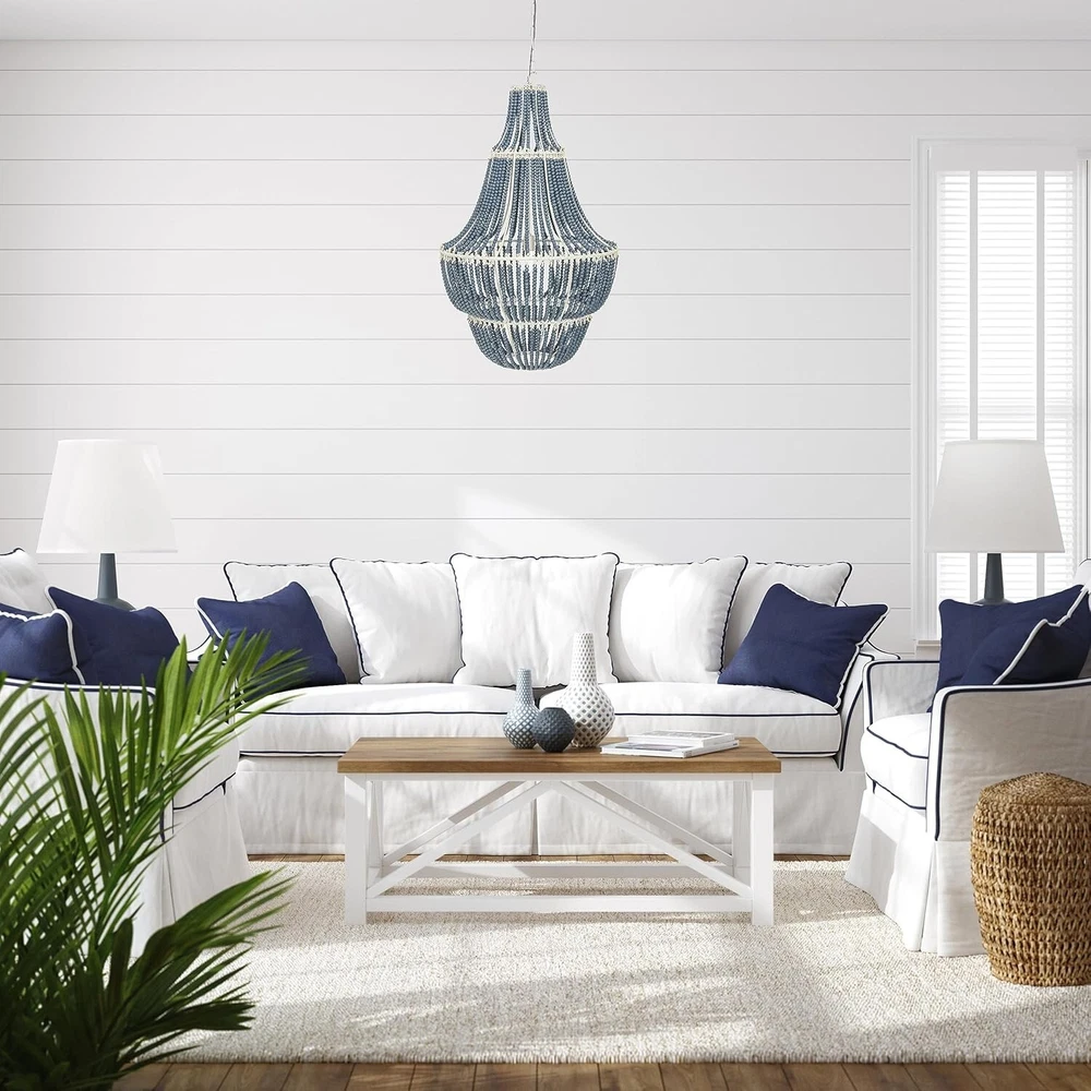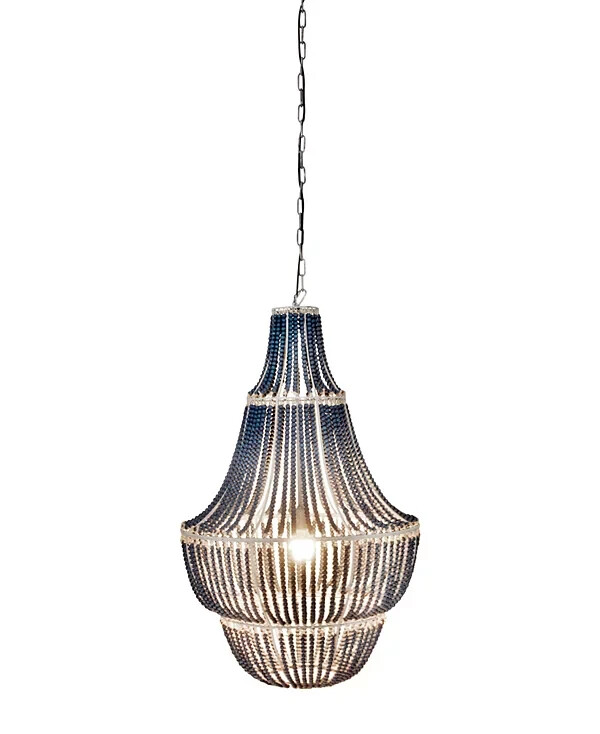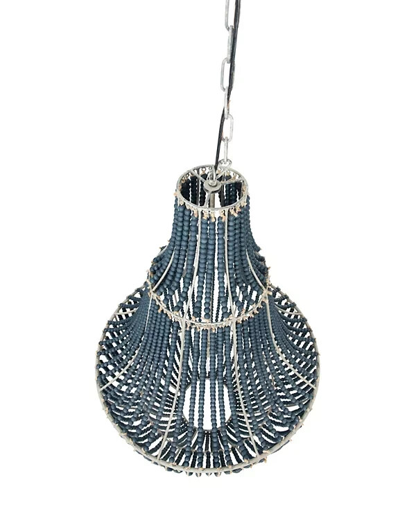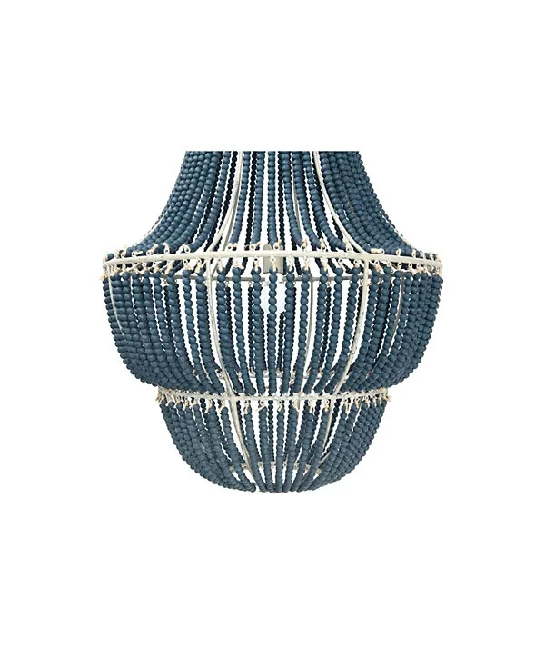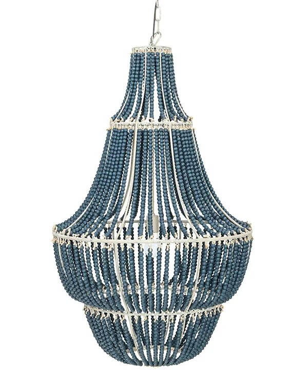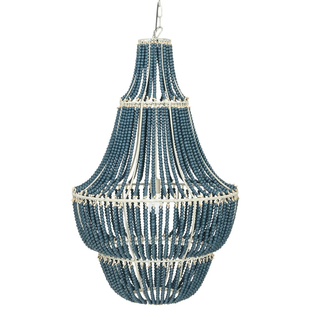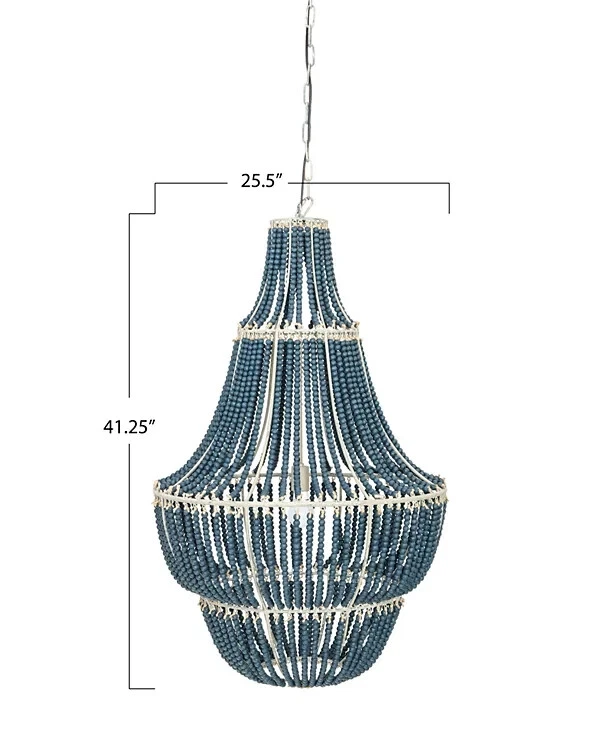 Brand Creative Co-Op Color Blue Material Metal Style Modern Light fixture form Chandelier About this item Perfect for a foyer or over a dining table Pair with other objects such as a mirror displaying wood beaded accents Transform any room with this decorative chandelier 25.5"L x 25.5"W x 41.25"H Requires 1 lightbulb, maximum 40 watts (not included) Cord is 43" / Chain is 40"