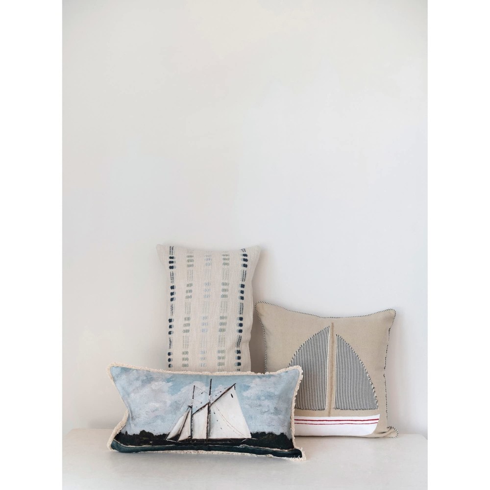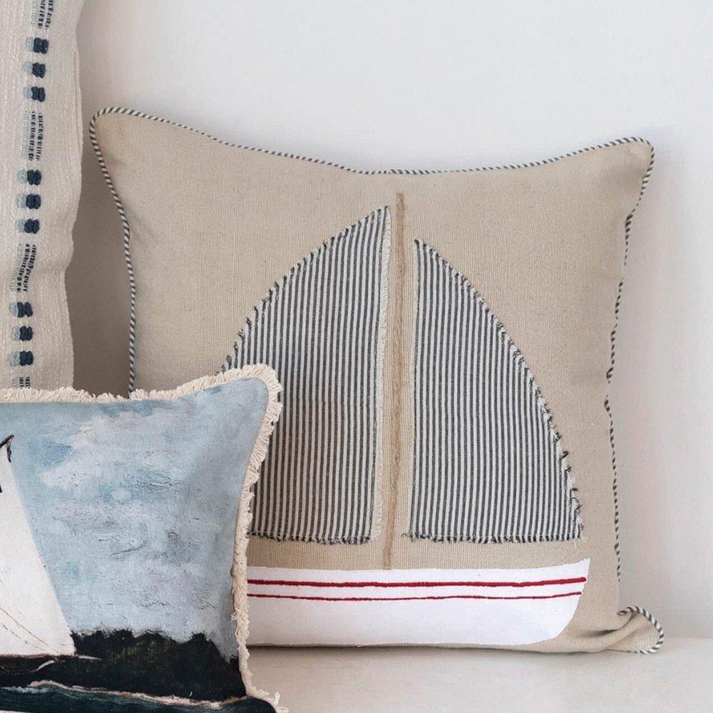 Creative Co-Op Cotton Appliqued Boat and Striped Piping Pillow, 20" L x 20" W x 2" H, Multicolor This playfully nautical throw pillow features a durable woven cotton construction with an appliqued boat and striped piping Square multicolor cotton throw pillow with appliqued boat and striped piping; Natural cotton encasement on back Express your constantly evolving style with the simple addition of this eye-catching pillow Removable throw pillow cover and insert; Back zipper with hidden flap; Machine wash cold, gentle cycle, do not bleach, tumble dry low, warm iron if needed Pillow measures 20" L x 20" W x 2" H Shipping We offer FREE shipping on all orders! We ship within Three business days of payment, usually sooner. We use a selection of shipping services such as UPS, FedEx, USPS etc. We only ship to the lower 48 states, no APO/FPO addresses or PO Boxes allowed. Local pickups and combined shipping options are not provided at this time. Return You can return a product for up to 30 days from the date you purchased it. Any product you return must be in the same condition you received it and in the original packaging. Please keep the receipt. Payment We accept payment by any of the following methods: PayPal Please pay as soon as possible after winning an auction, as that will allow us to post your item to you sooner! Feedback Customer satisfaction is very important to us. If you have any problem with your order, please contact us and we will do our best to make you satisfied. Contact Us If you have any queries, please contact us via ebay. We usually respond within 24 hours on weekdays. Please visit our eBay store to check out other items for sale! Thank you for shopping at our store.