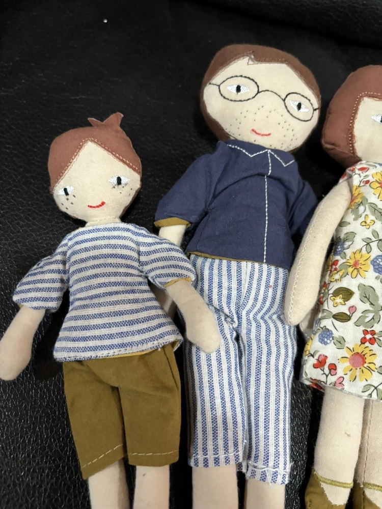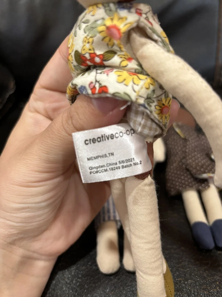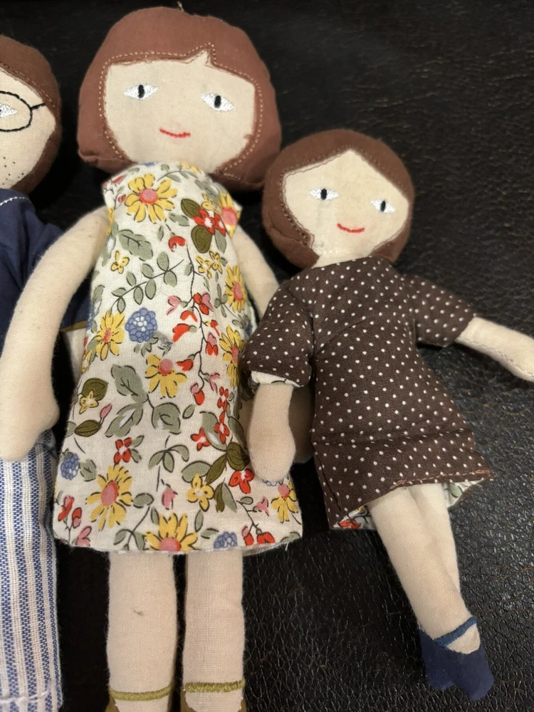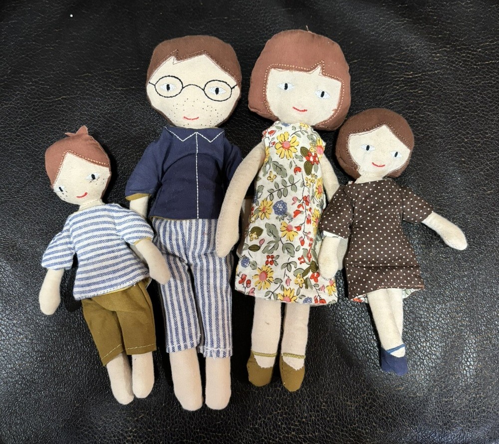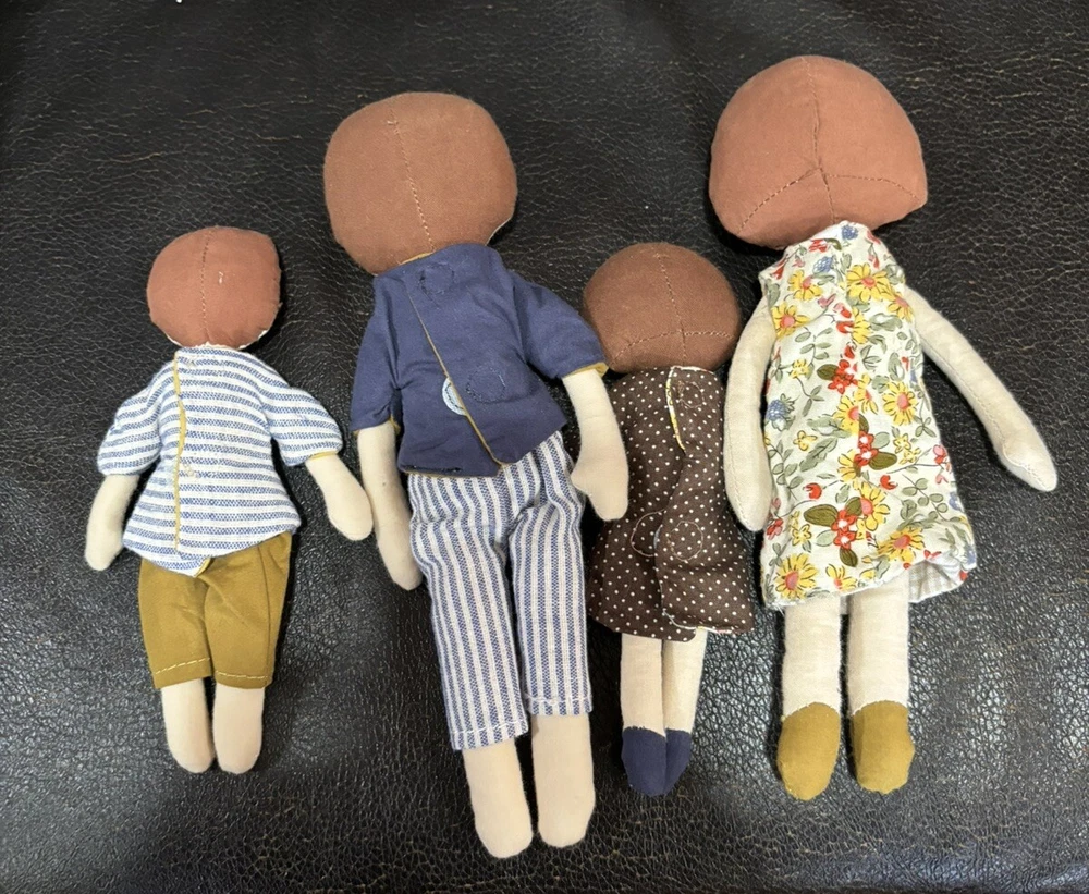 This Creative Co-Op Cotton Plush Dolls Family Set Of 4 Adorable is the perfect addition to any doll collection. The set includes four 9 inch and 6 inch dolls made of soft cloth material. Each doll has a unique complexion and is designed to look like a member of a family. The set is perfect for children aged 2 years and up and is part of the Creative Co-Op franchise. The dolls are play dolls and are meant for imaginative play. They come with a variety of pieces to enhance the play experience. Get this set today to add some adorable dolls to your child's toy collection. These are 100% cotton. They are in very good used condition. See photos come as is pictured.