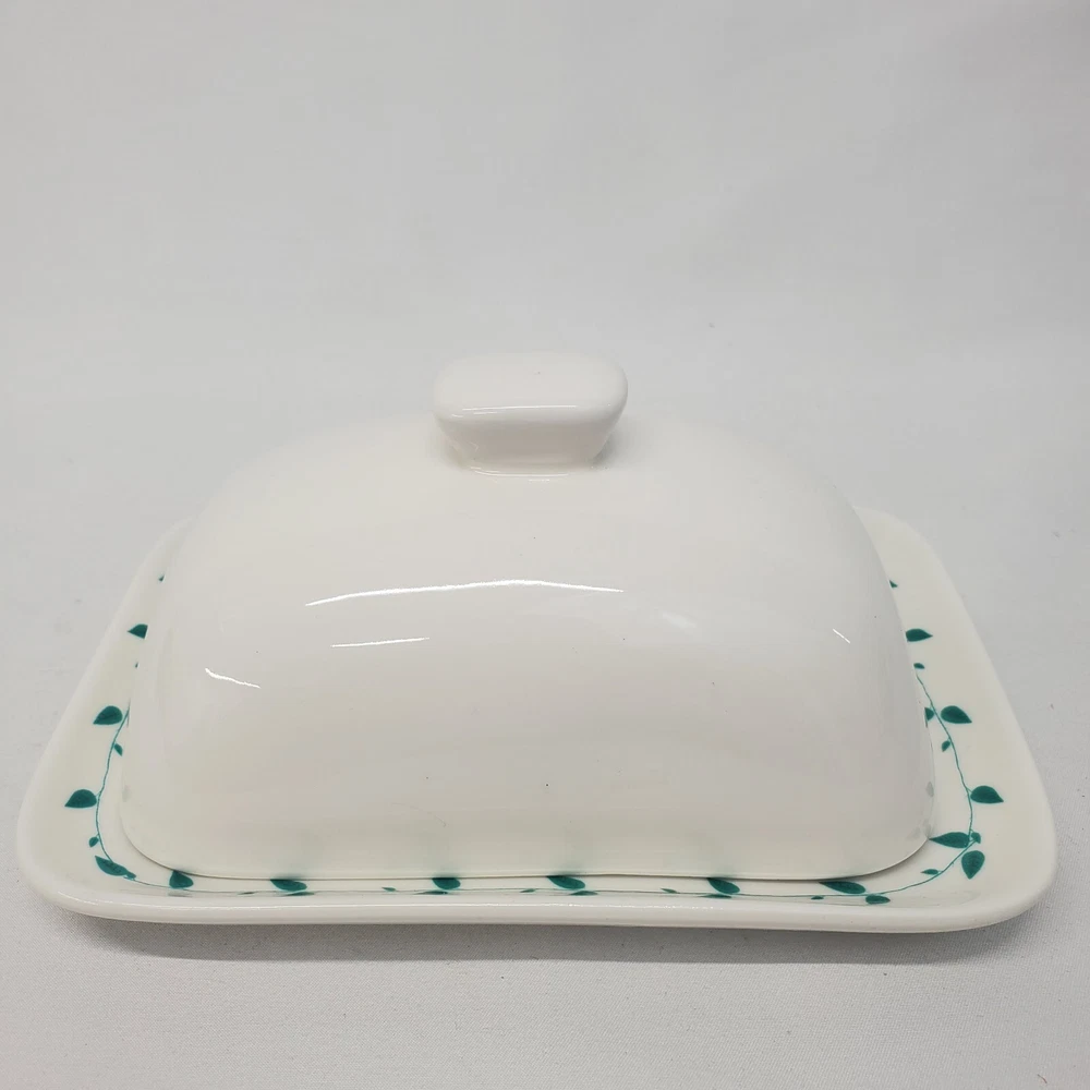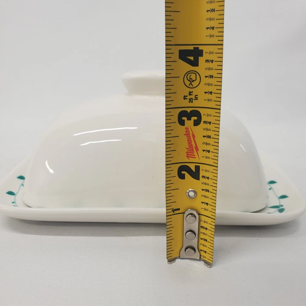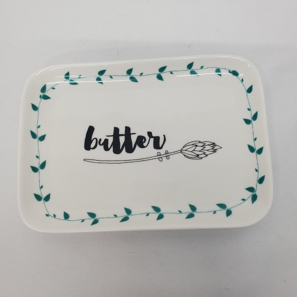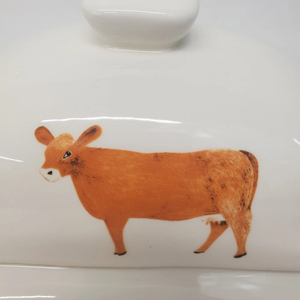 Creative Co-Op Covered Butter Dish Cow Green Leaves Cottage 7.25" Zoe Ingram. Measurements in photos. Condition is Pre-owned. Shipped with USPS Mail