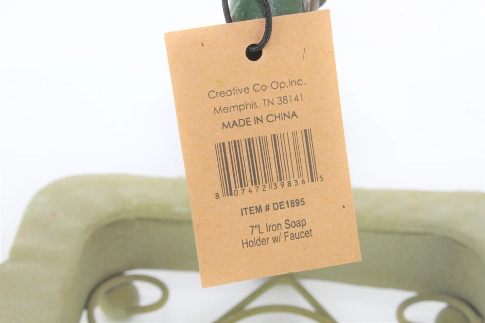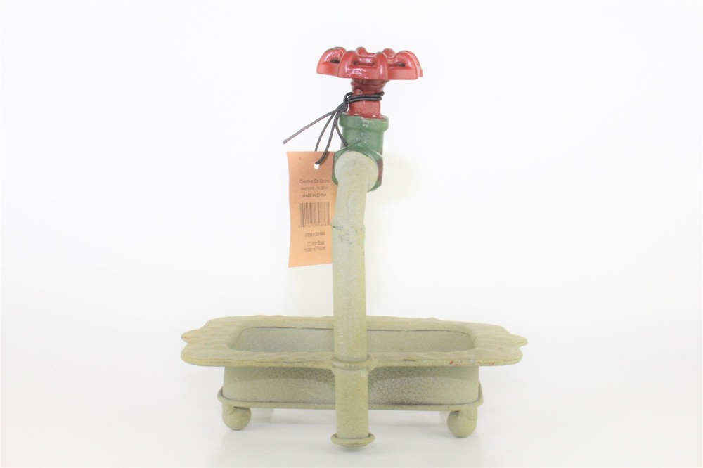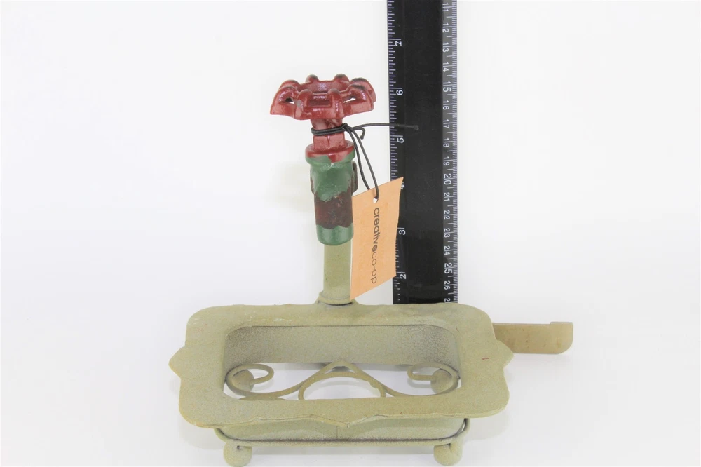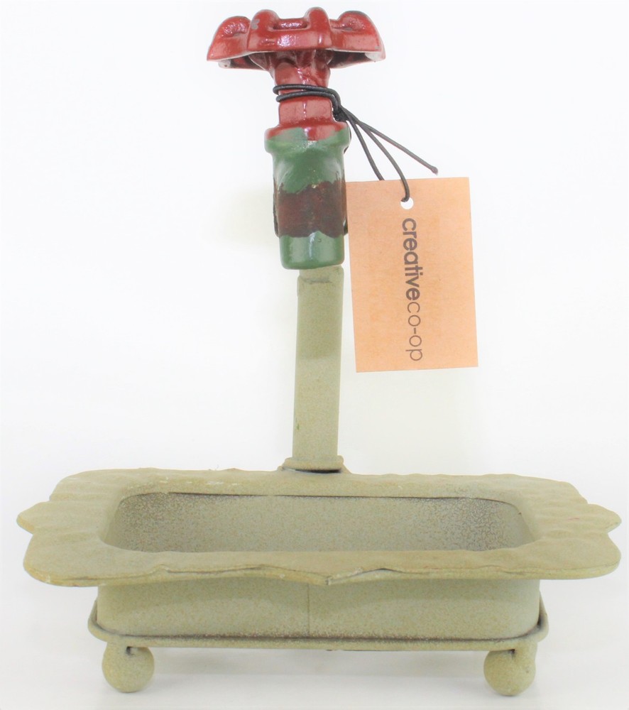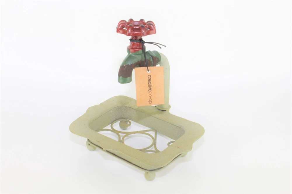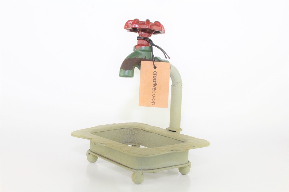 Creative Co-Op DE1895 Rustic Metal Soap Holder with Faucet Condition: New With Tags Issues: No Chips, Cracks, Crazing, or Repairs Height: 7" Length: 6 3/4" Width 5 1/4" Weight: 1 pound 3 oz Country/Region of Manufacture: China Brand: Creative Co-Op Please note that I have multiple shipping options for items that ship over 1 lb. During check out please select the option that best works for you.