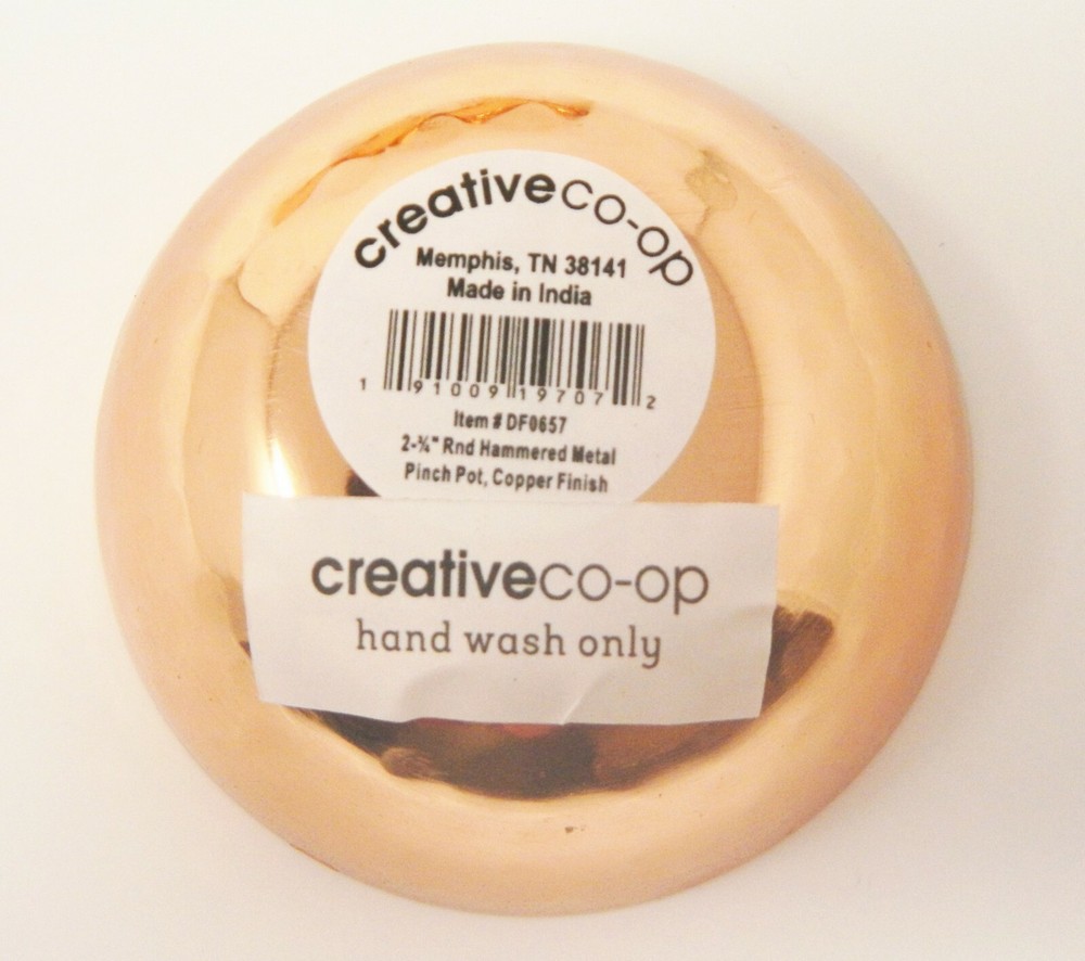Creative Co-Op DF0657 2 3/4" Round Hammered Metal Pinch Pot Copper Finish QTY 12. These are brand new pinch pots. Hammered metal construction. Functional and charming addition to any kitchen décor. can also keep treasured jewelry or trinkets safe in this beautiful pinch pot. 2. 75"L x 2. 75"W x 1"H. We only offer free shipping to the 48 contiguous states. We do not ship free to Puerto Rico, Alaska or Hawaii. APO/FPO, Hawaii, Alaska, Puerto Rico and other U.S. territories must e-mail for a shipping quote as additional charges apply. Order Processing We only process orders that are paid in full. We process and ship orders Monday - Friday 8AM - 4PM Central Standard Time. Orders place after hours, weekends or holidays will be processed the next business day. Changes To Orders Before you place your order, please check that your shipping address information is correct in your ebay account. We process our orders quickly and most of the time cannot change the address information quickly enough before the item is shipped. We will not be responsible to pay the shipping costs when re-shipping an order because of an incorrect address supplied to us. Returns Please inspect your packages upon arrival. Although we double check all orders before shipment, transit problems occasionally occur. We ask that all goods be in their original package - in resaleable/Brand New condition. Feedback We are customer focused and do want every transaction to be positive for the customer. Once in a while mistakes happen and this is an opportunity for us to make it right. If this does occur, please allow us the opportunity to show that we are customer focused and remedy any problems before you leave feedback. Contact Us We are available Monday through Friday, 8:00 a.m. to 4:30 p.m. CST. TXODDJOBS 3950 Hwy 157 S Euless, TX 76040 Email - Please Use The eBay Message System to contact us! Check out my store at: http://stores.ebay.com/Texas-Best !